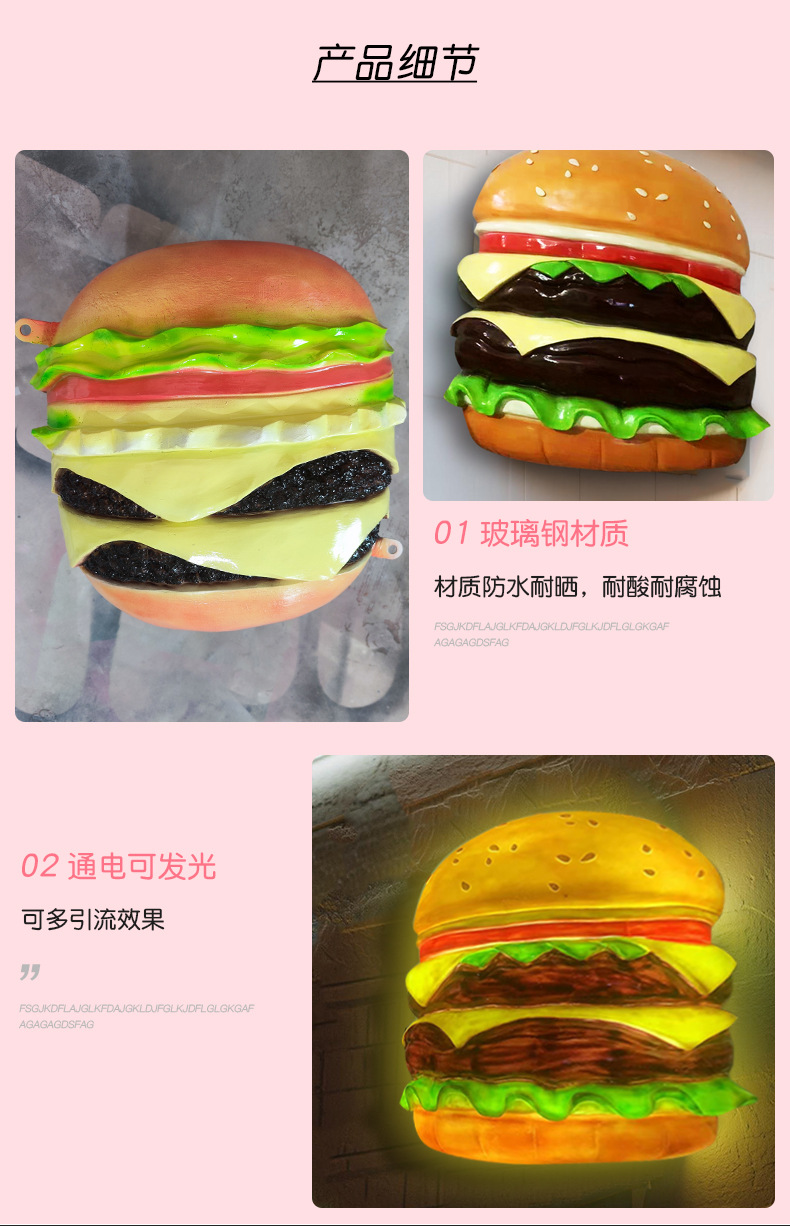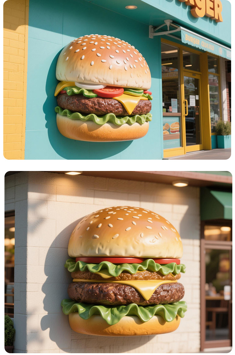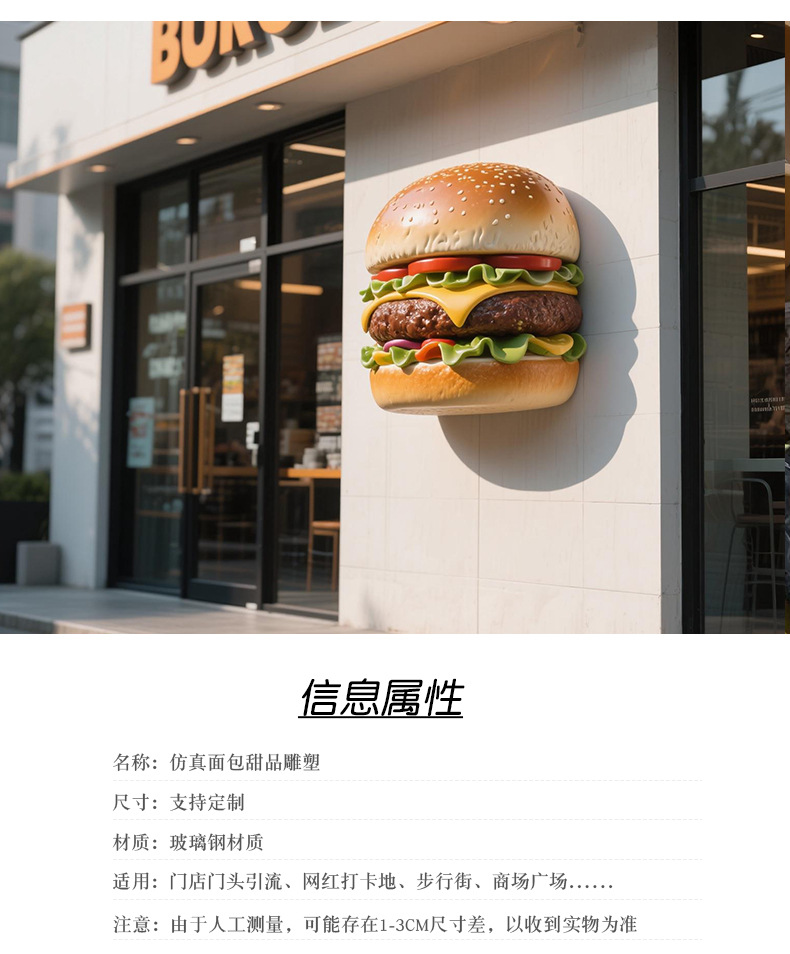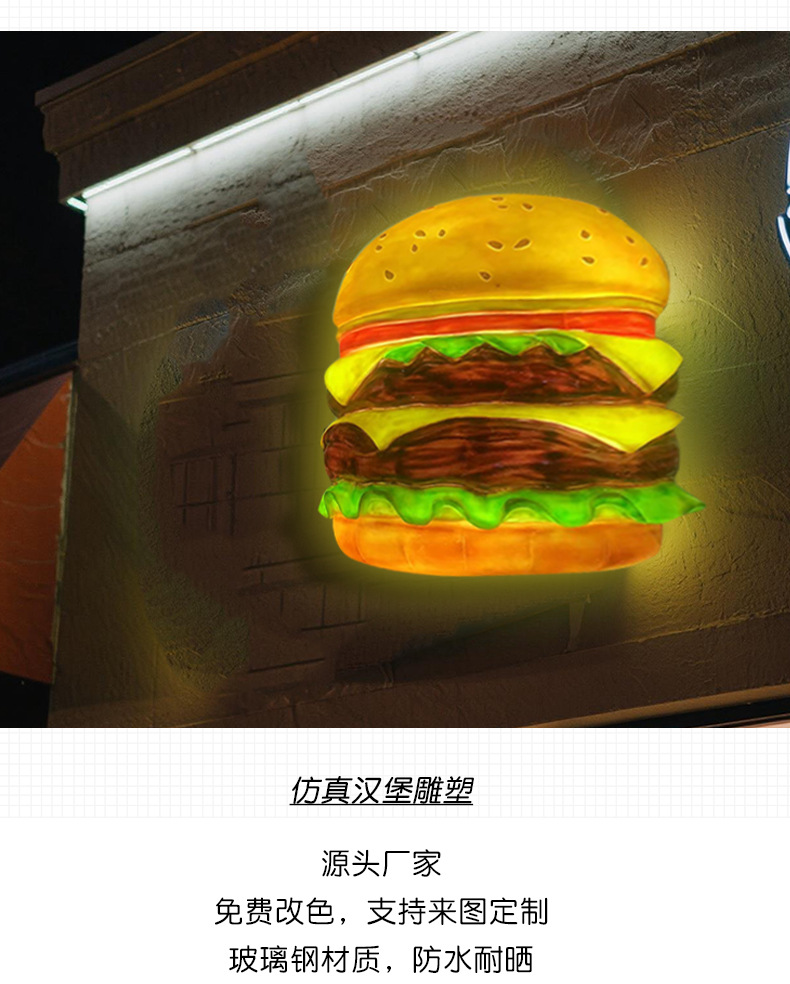 모형 대형 햄버거 모형 유리섬유 조각 빵집 장식 베이커리 매장 입구 조명 벽걸이 라이트박스스토어 가기
