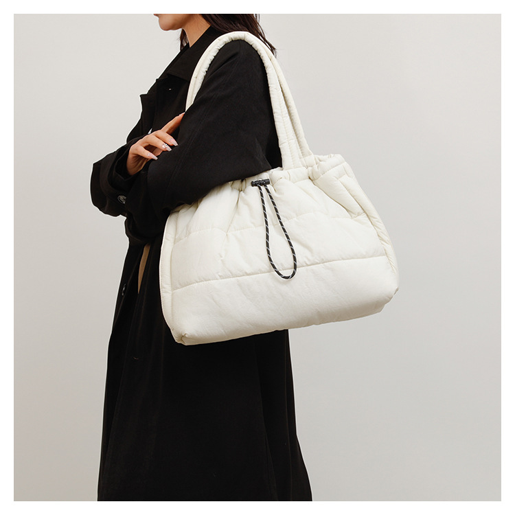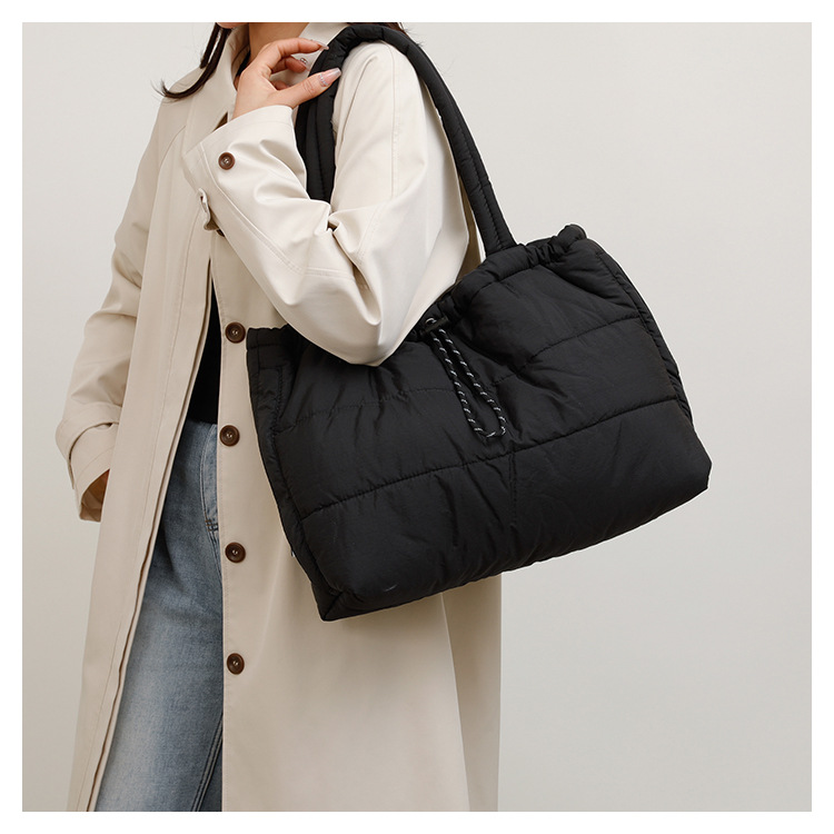 2025 새로운 스타일 다운 백 여성용 푹신한 코튼 토트 백 경량 캐주얼 코튼 백 올 매치 대용량 숄더 백