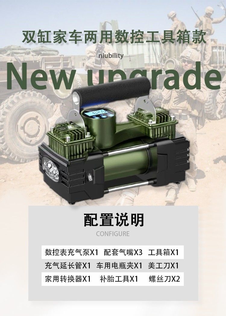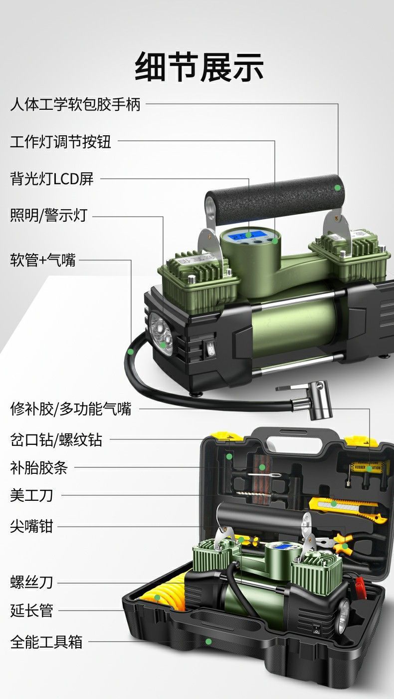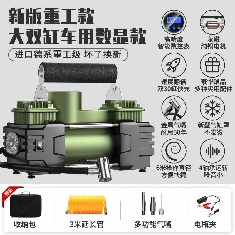 자동차 공기 펌프 이중 실린더 고출력 자동차 12v 가정용 220v 이중 목적 타이어 공기 주입을위한 휴대용 공기 펌프