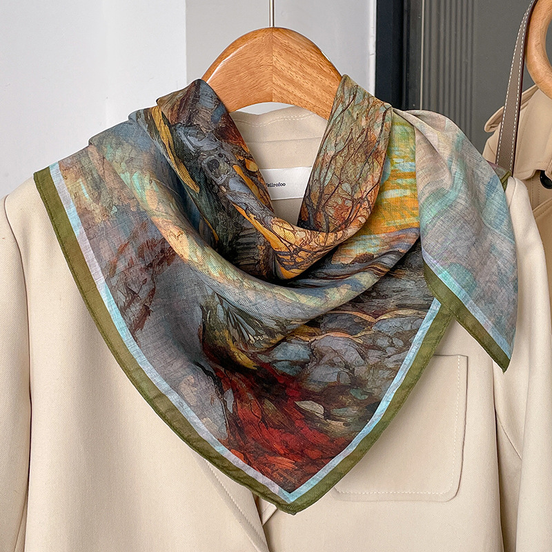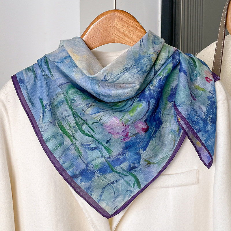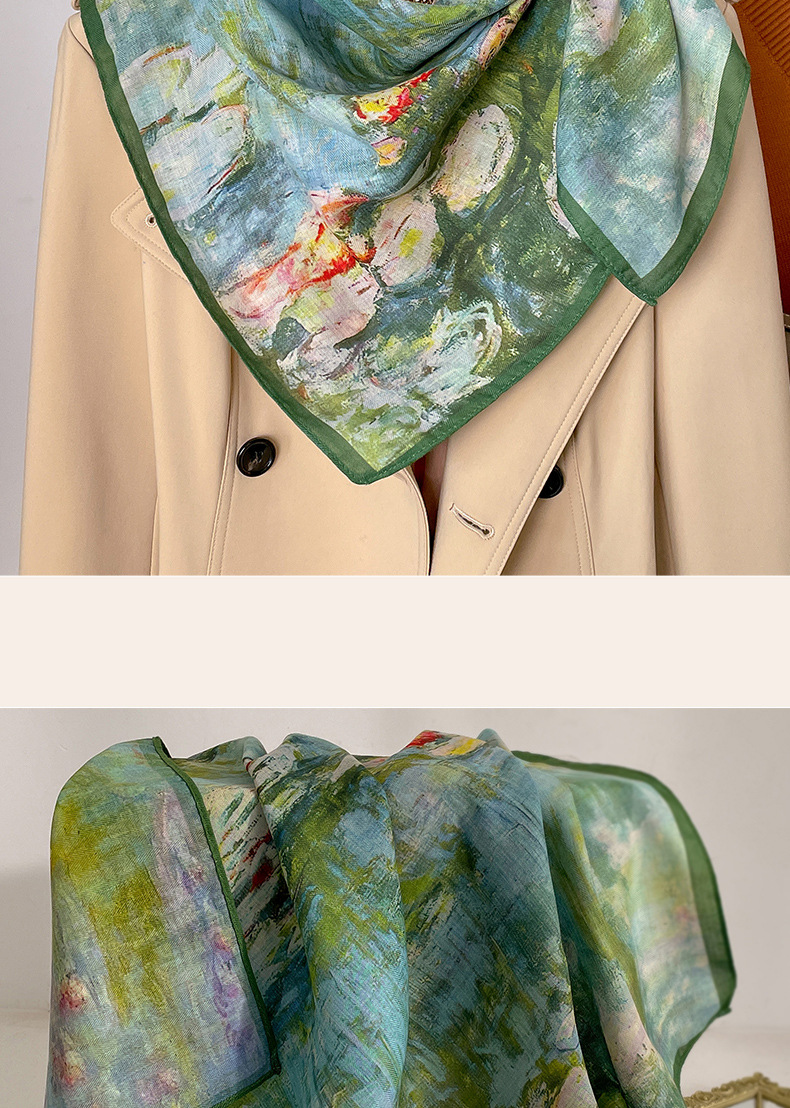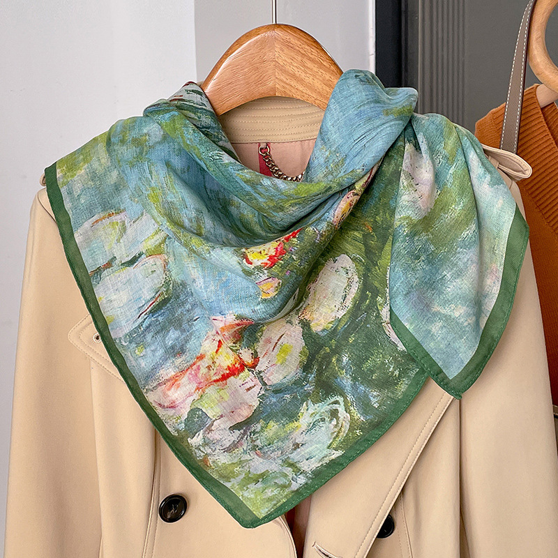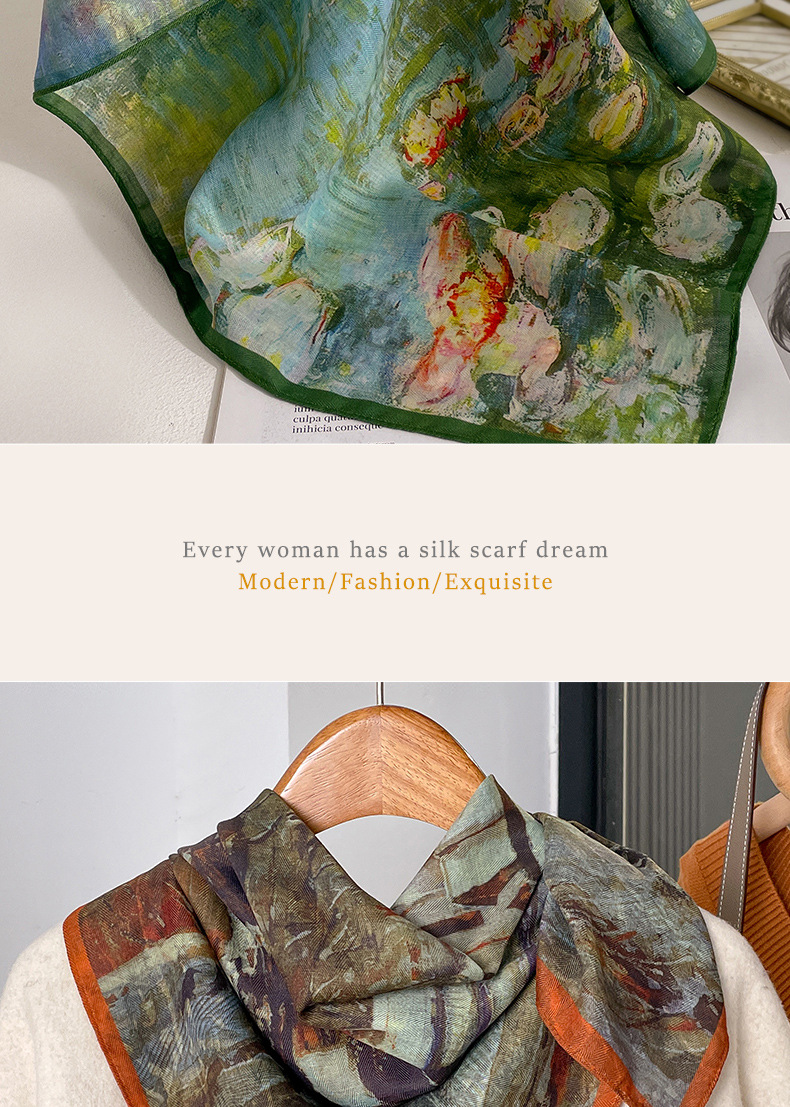 녹색 유화 반 고흐 흰 장미 리넨 스카프 여성 봄, 가을 70 작은 사각형 스카프 양면 이색 스카프 목도리스토어 가기