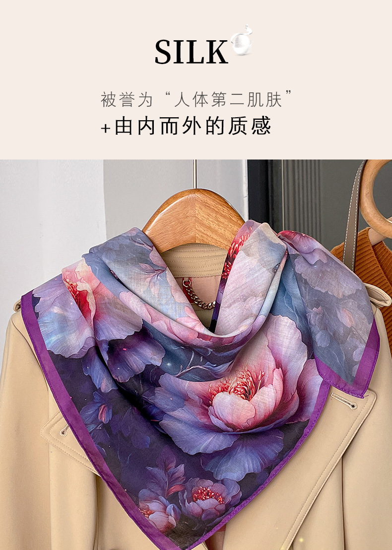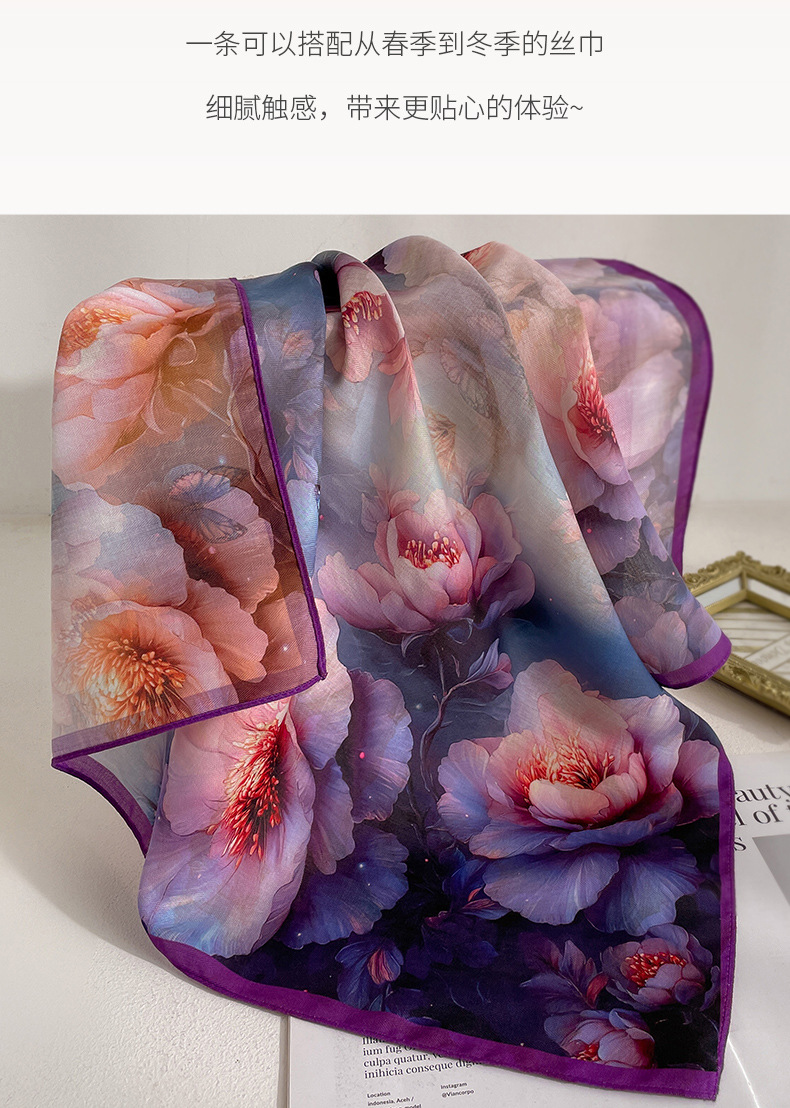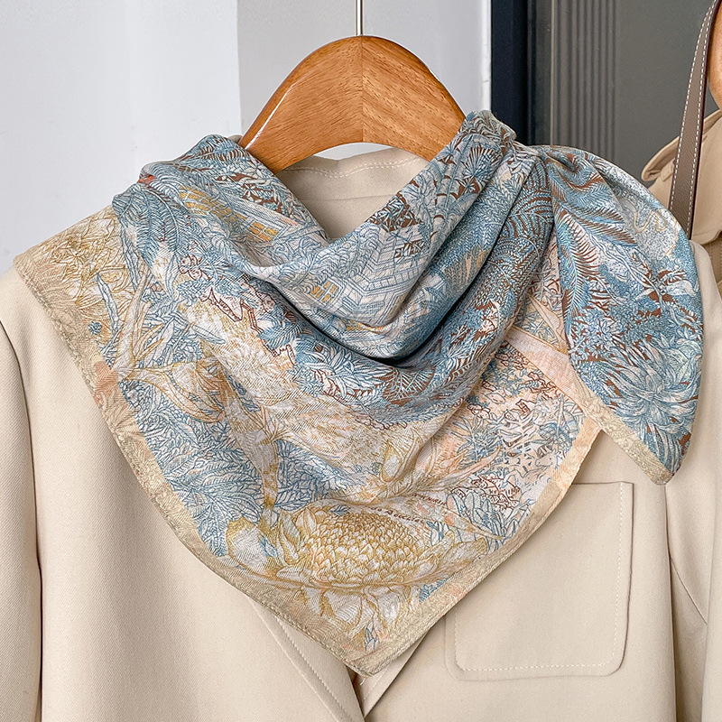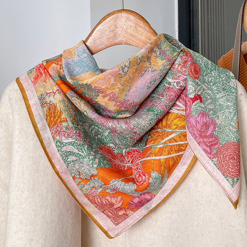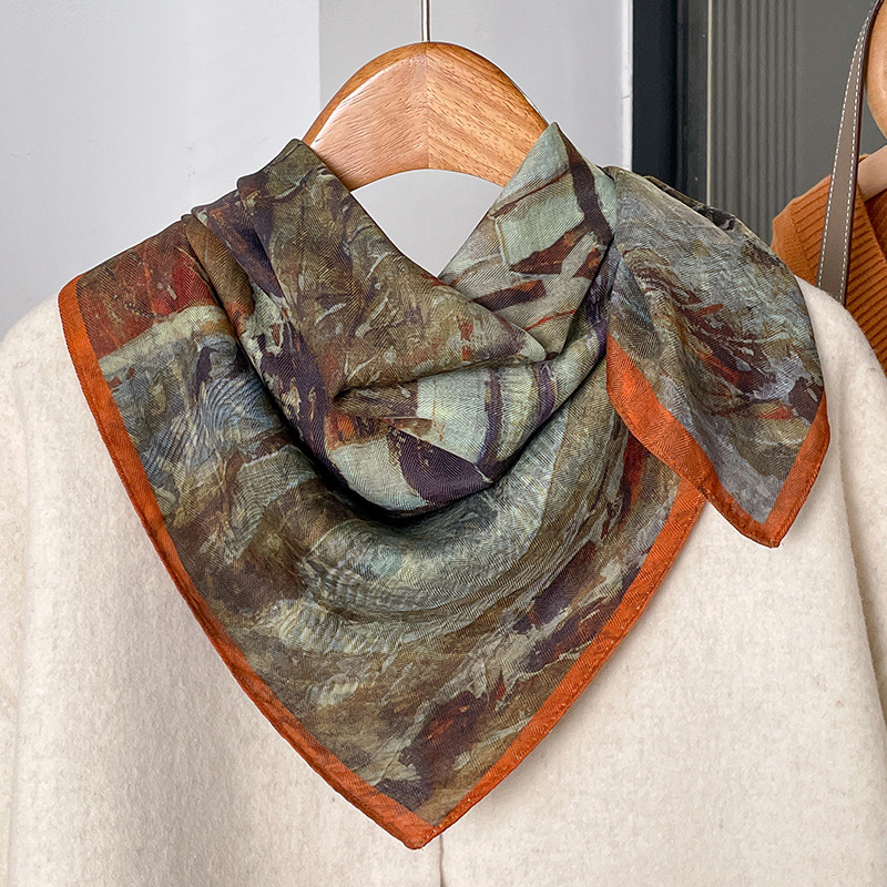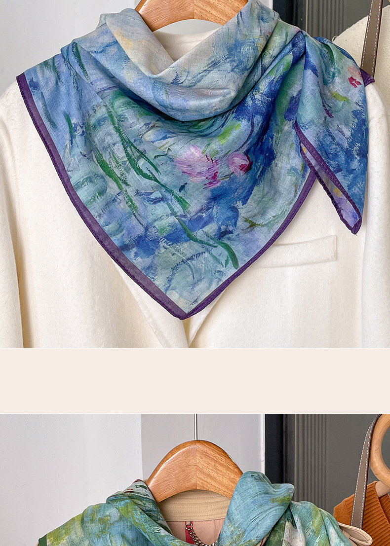 녹색 유화 반 고흐 흰 장미 리넨 스카프 여성 봄, 가을 70 작은 사각형 스카프 양면 이색 스카프 목도리스토어 가기