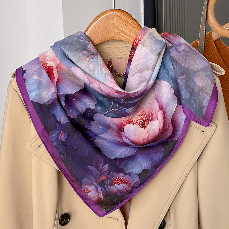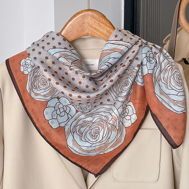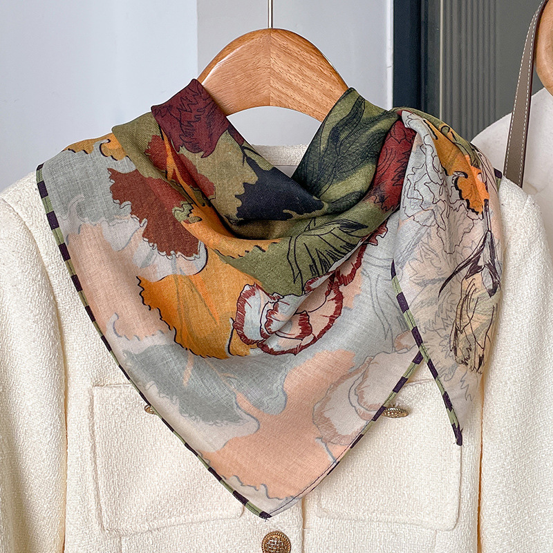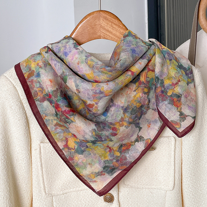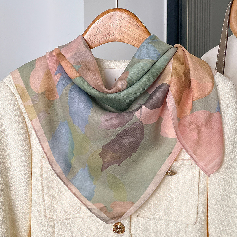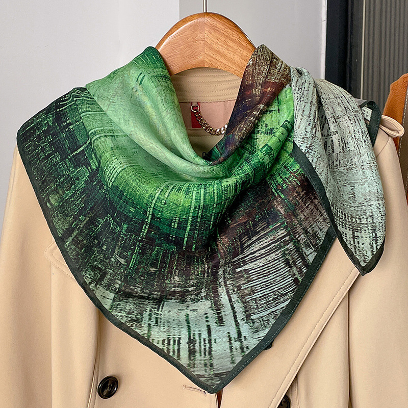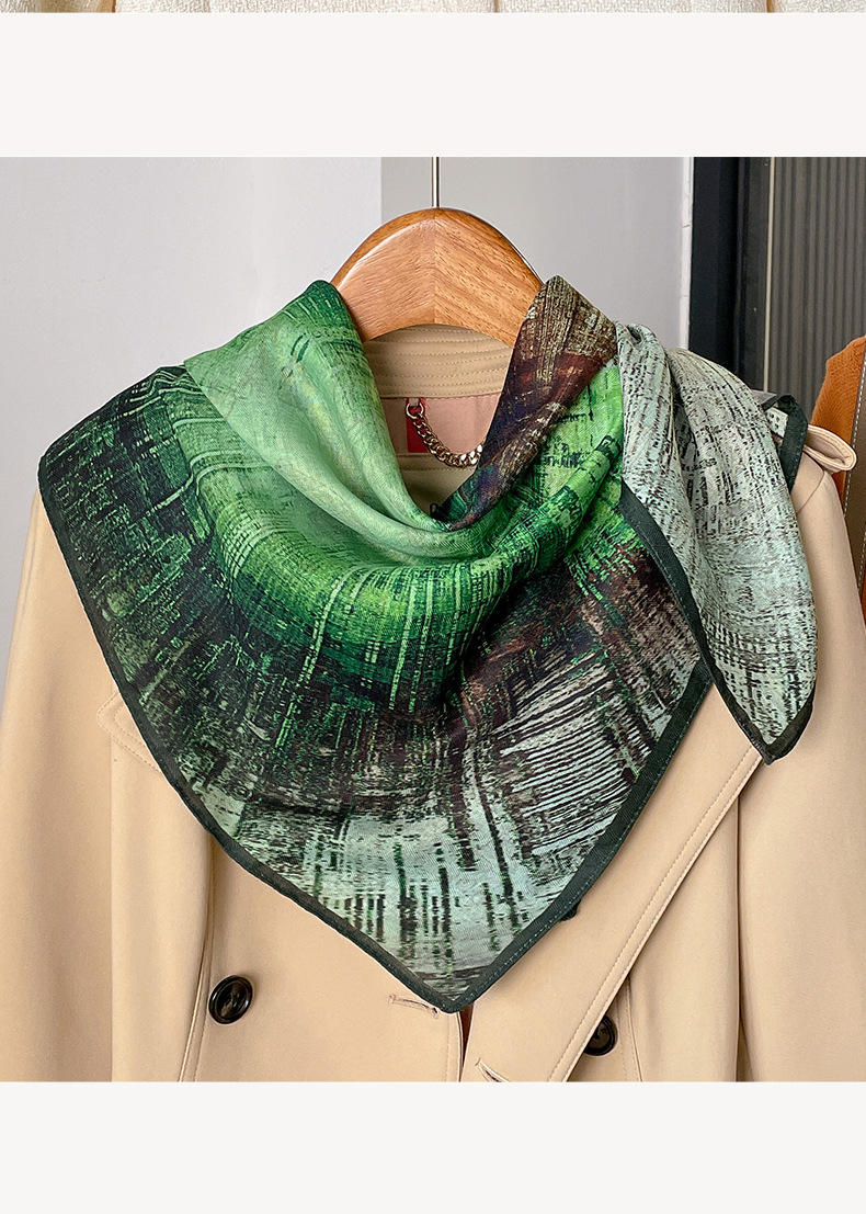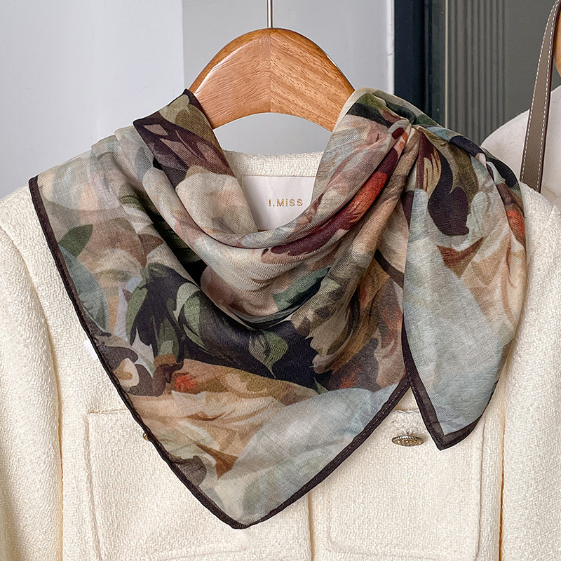 녹색 유화 반 고흐 흰 장미 리넨 스카프 여성 봄, 가을 70 작은 사각형 스카프 양면 이색 스카프 목도리