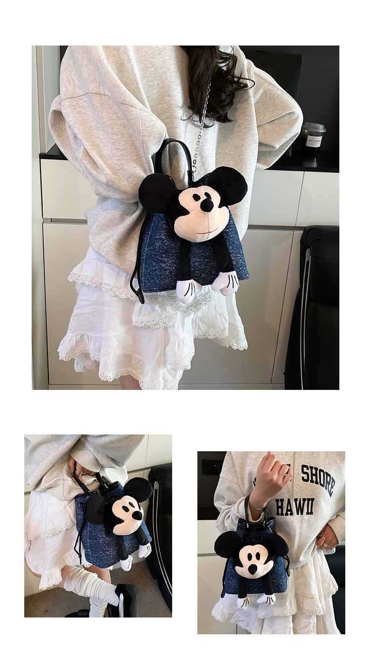 여성을위한 미키 인형 가방 2025 가을 새로운 한국어 패션 대용량 데님 버킷 백 다용도 숄더백