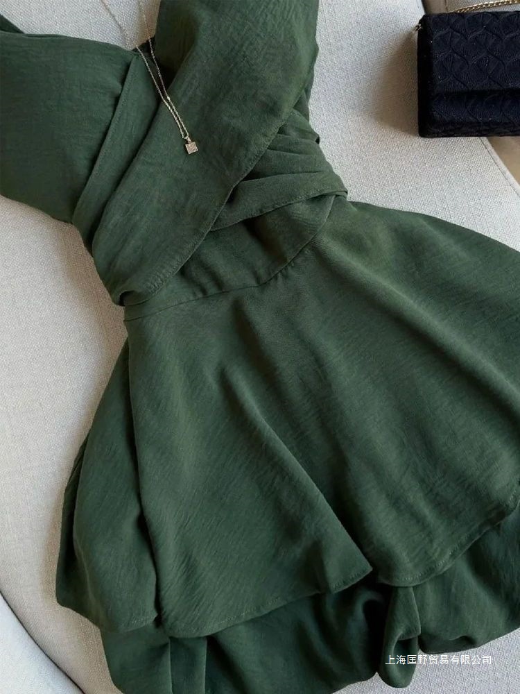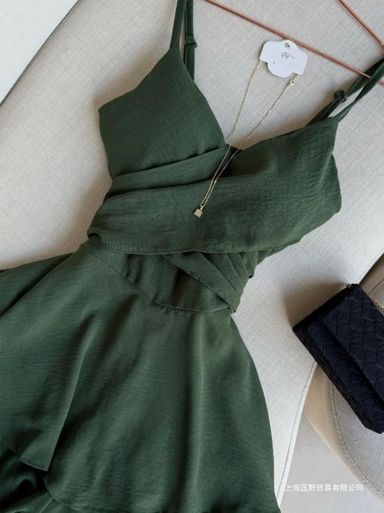 프랑스 스타일 차 브레이크 달콤한 녹색 민소매 원피스 2025 여름 새로운 해변 휴가 스타일 슬리밍 우아한 치마스토어 가기