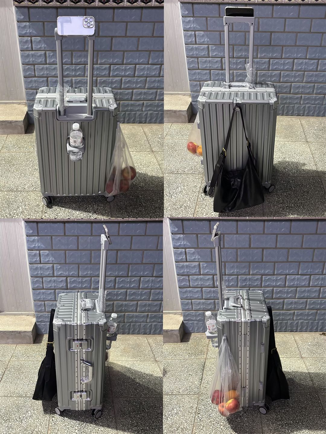 후크가있는 컵 홀더 2025 새로운 가방 패셔너블 솔리드 컬러 트롤리 케이스 대용량 학생 알루미늄 프레임 수하물 케이스스토어 가기