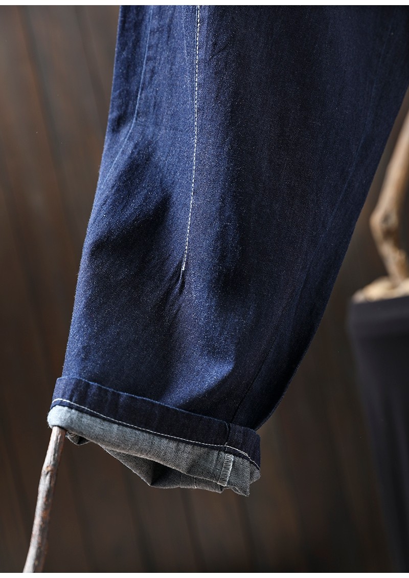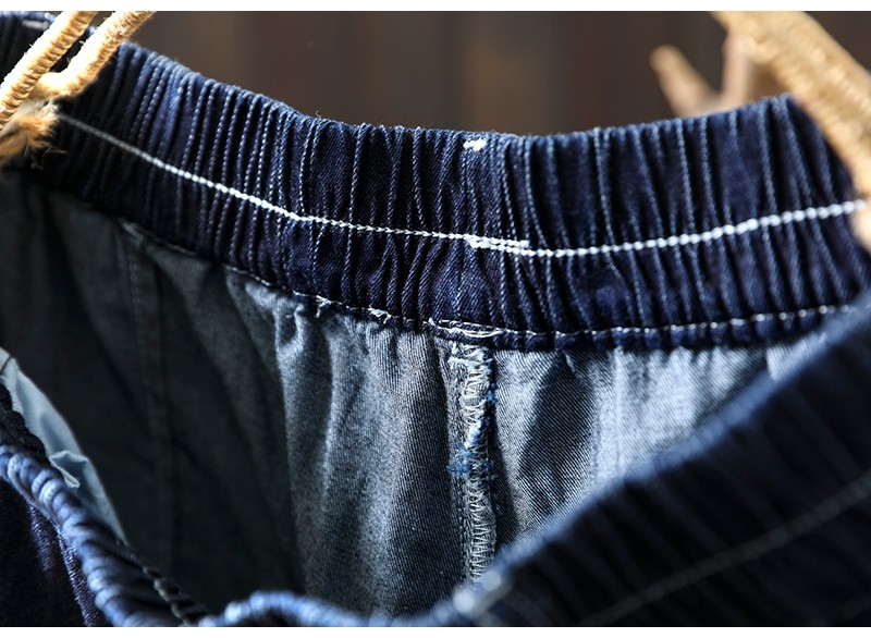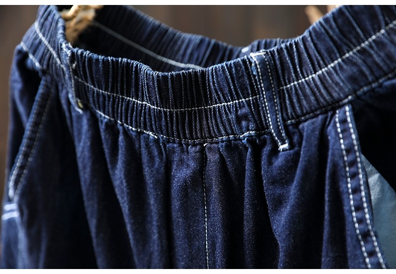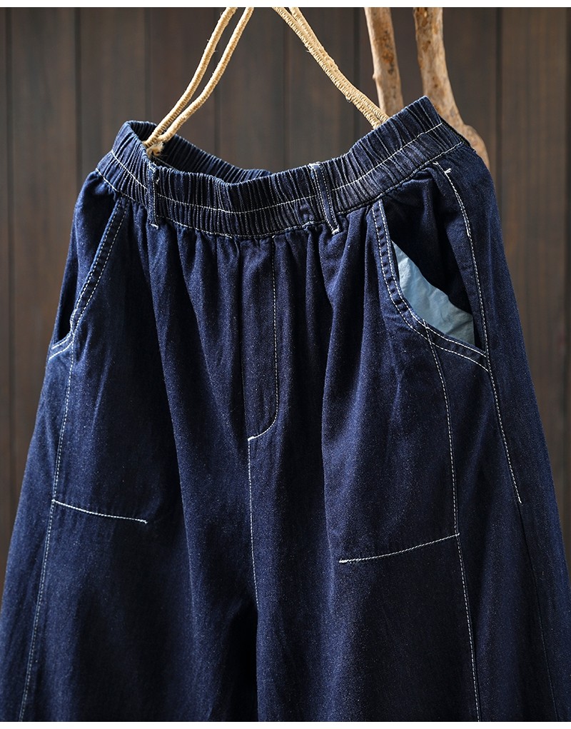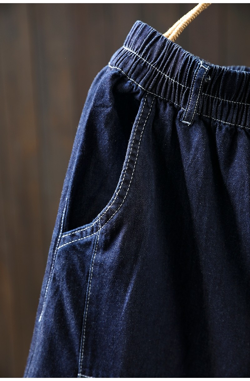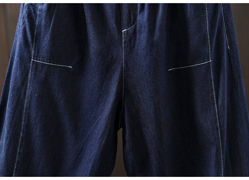 여름 얇은 밝은 선 색상 대비 다크 블루 데님 한랭 바지 여성용 느슨한 얇은 캐주얼 2177스토어 가기