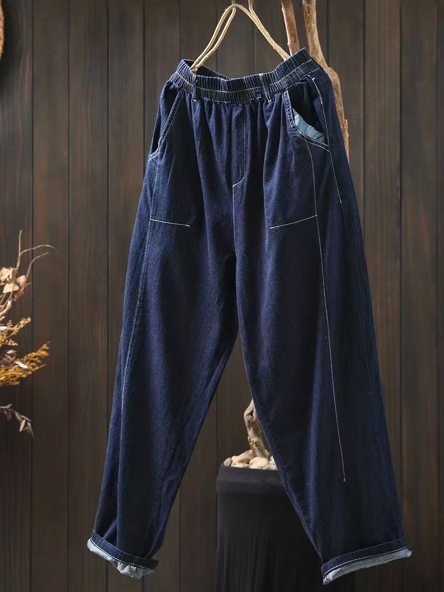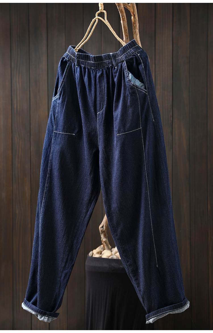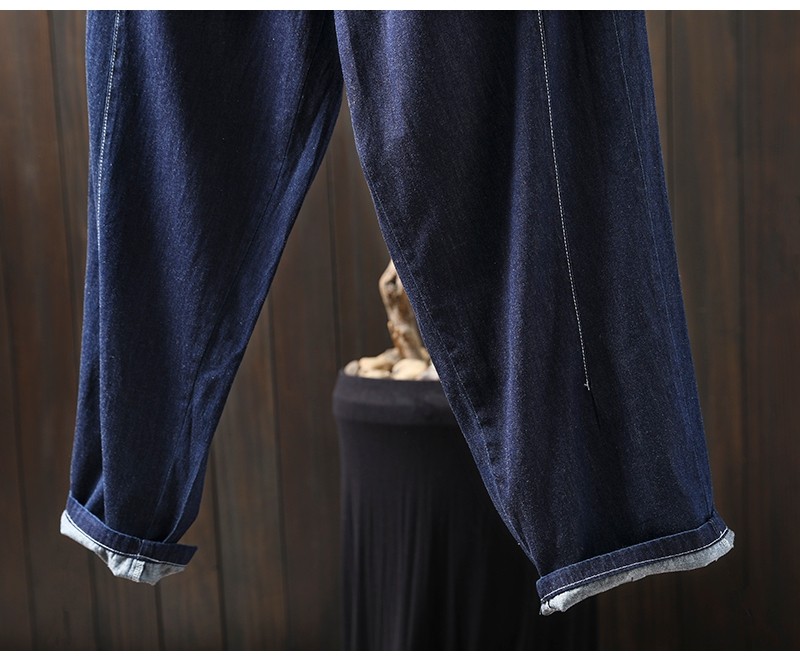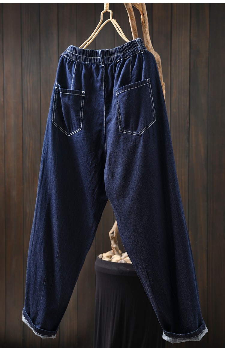 여름 얇은 밝은 선 색상 대비 다크 블루 데님 한랭 바지 여성용 느슨한 얇은 캐주얼 2177스토어 가기