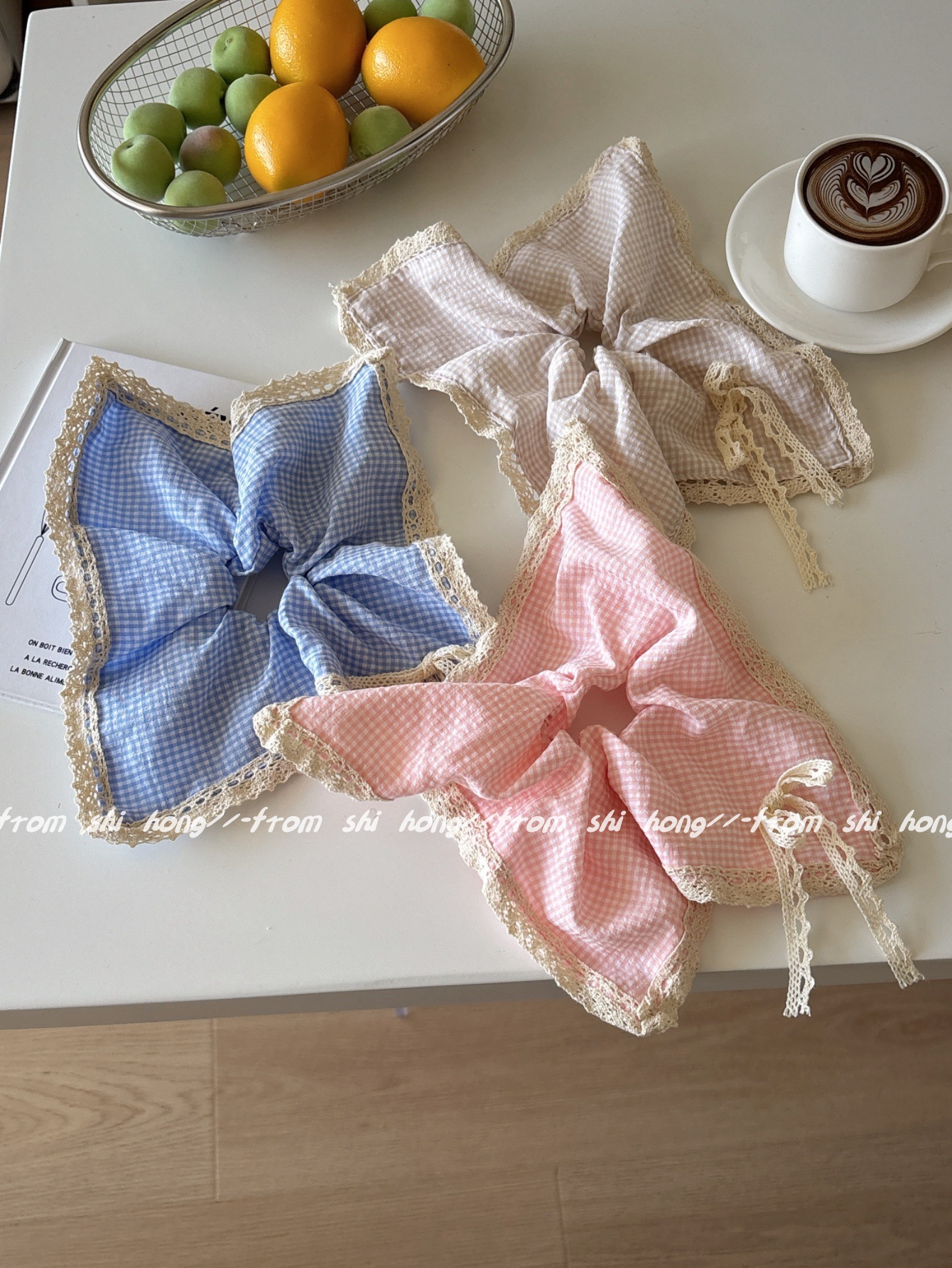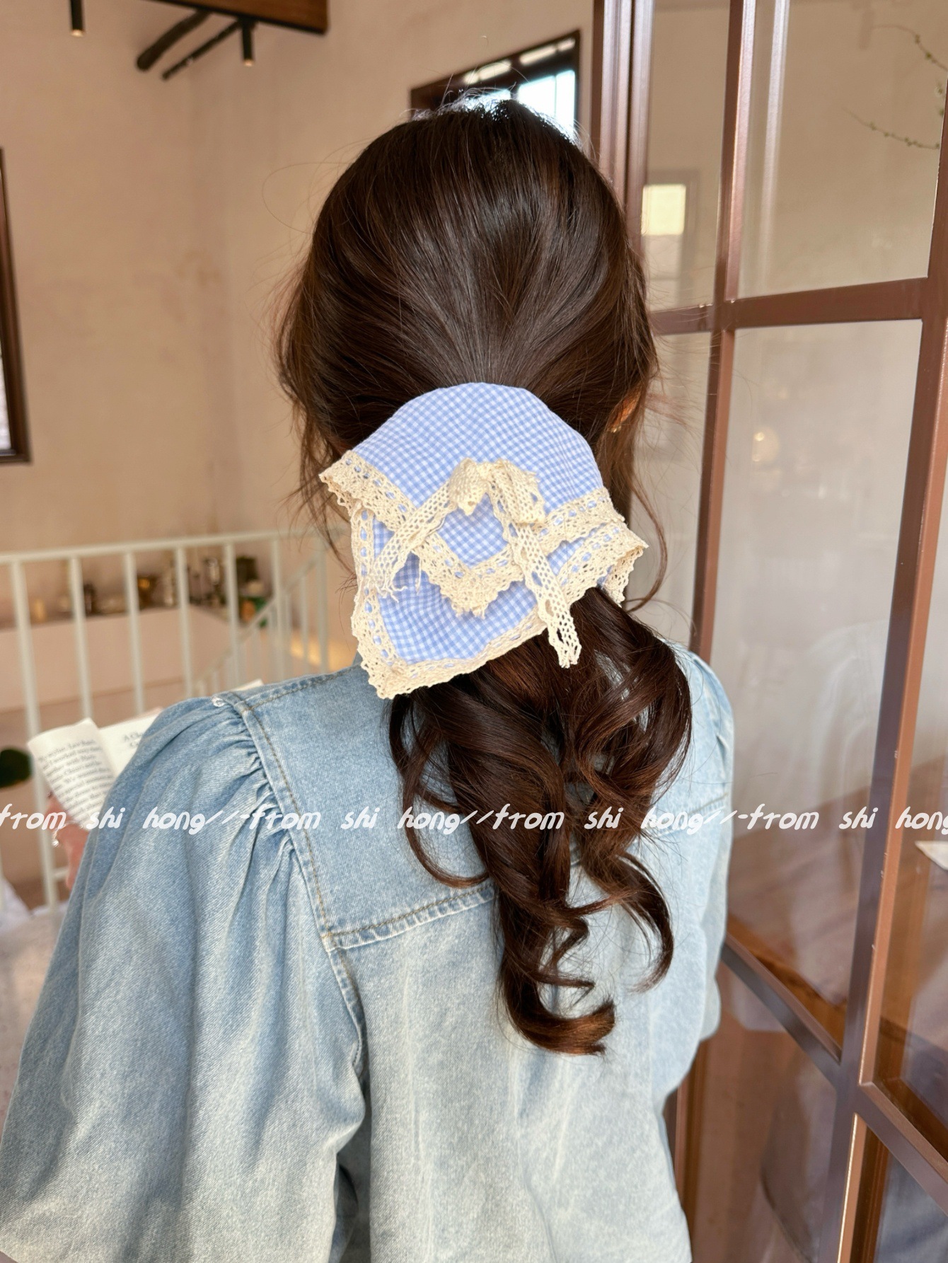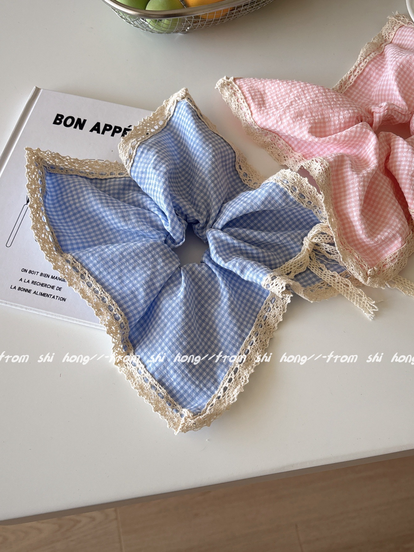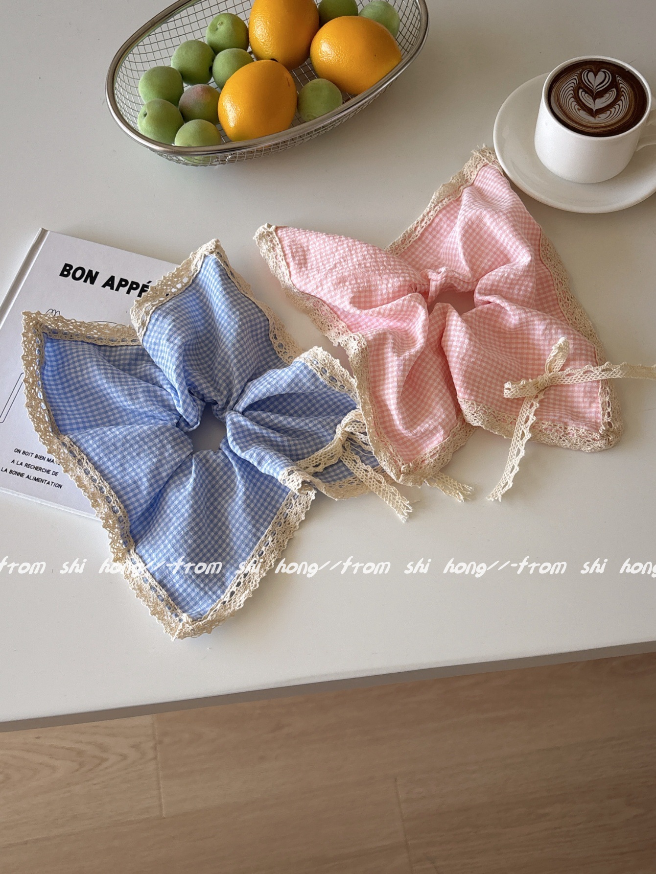프랑스 스타일 격자 무늬 레이스 활 광장 광장 대형 직분 헤어 링 여성 한국 스타일 스퀘어 헤어 볼 헤어 로프