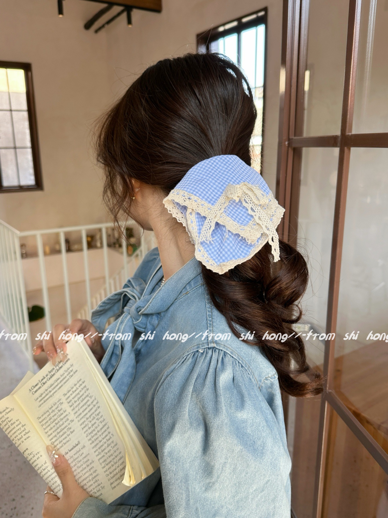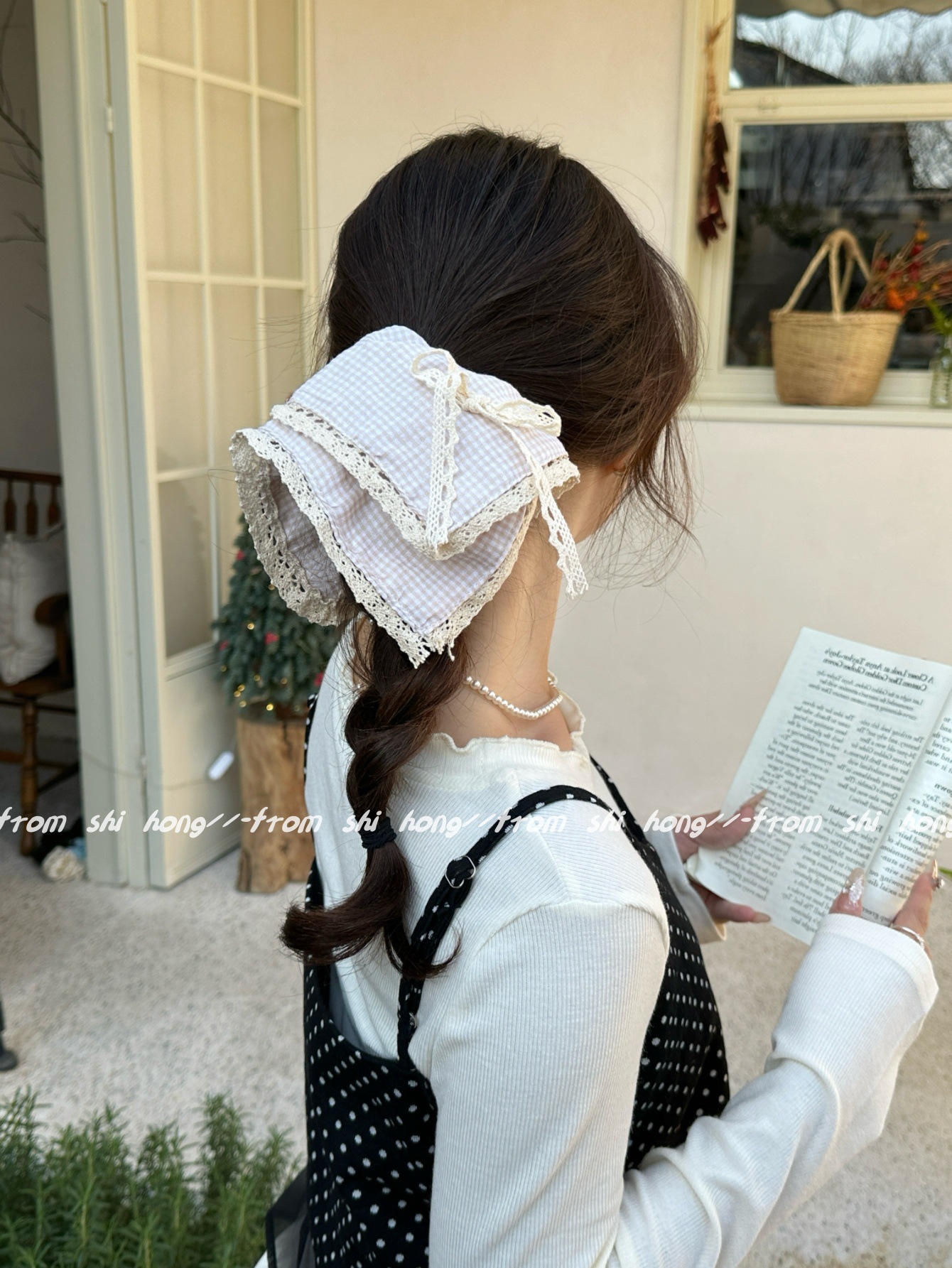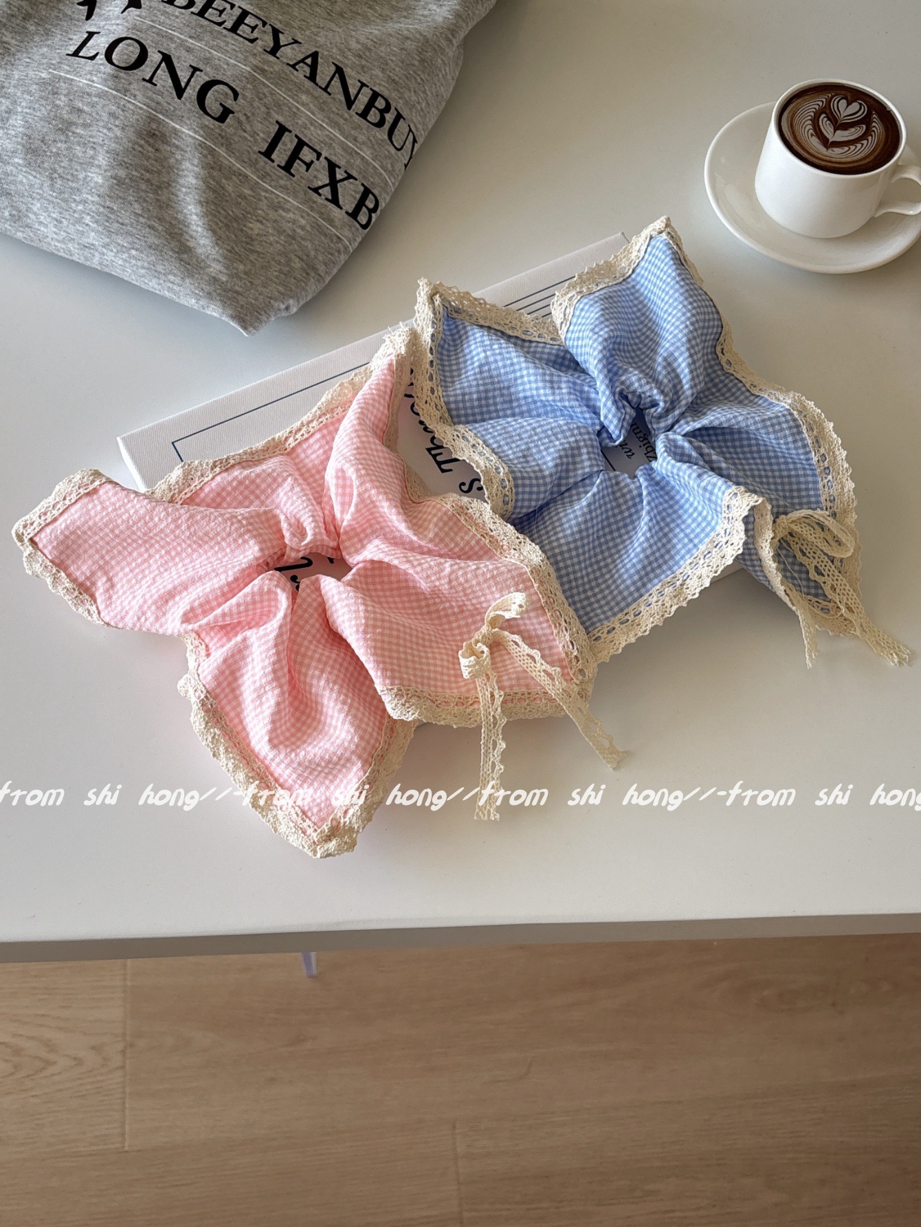 프랑스 스타일 격자 무늬 레이스 활 광장 광장 대형 직분 헤어 링 여성 한국 스타일 스퀘어 헤어 볼 헤어 로프