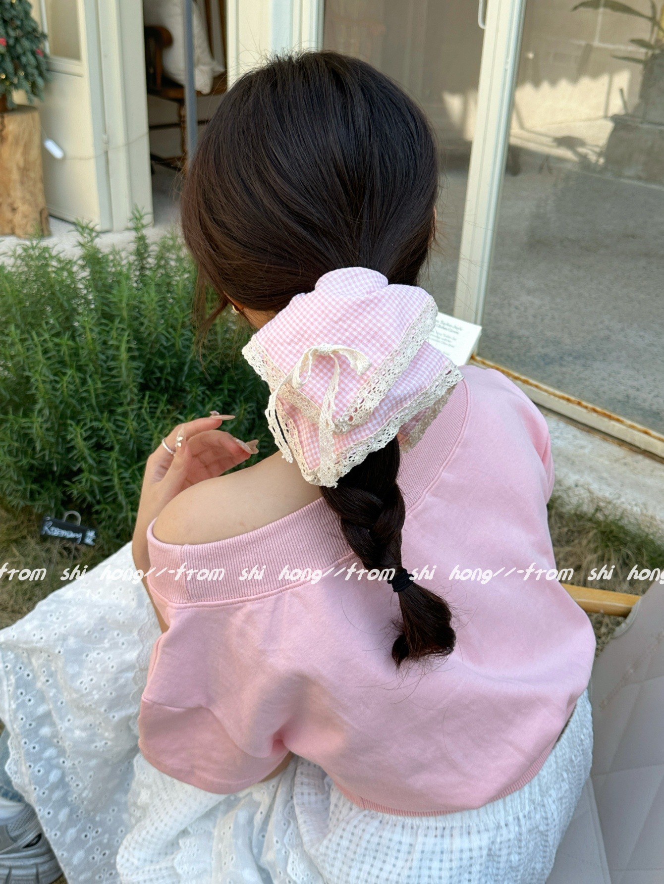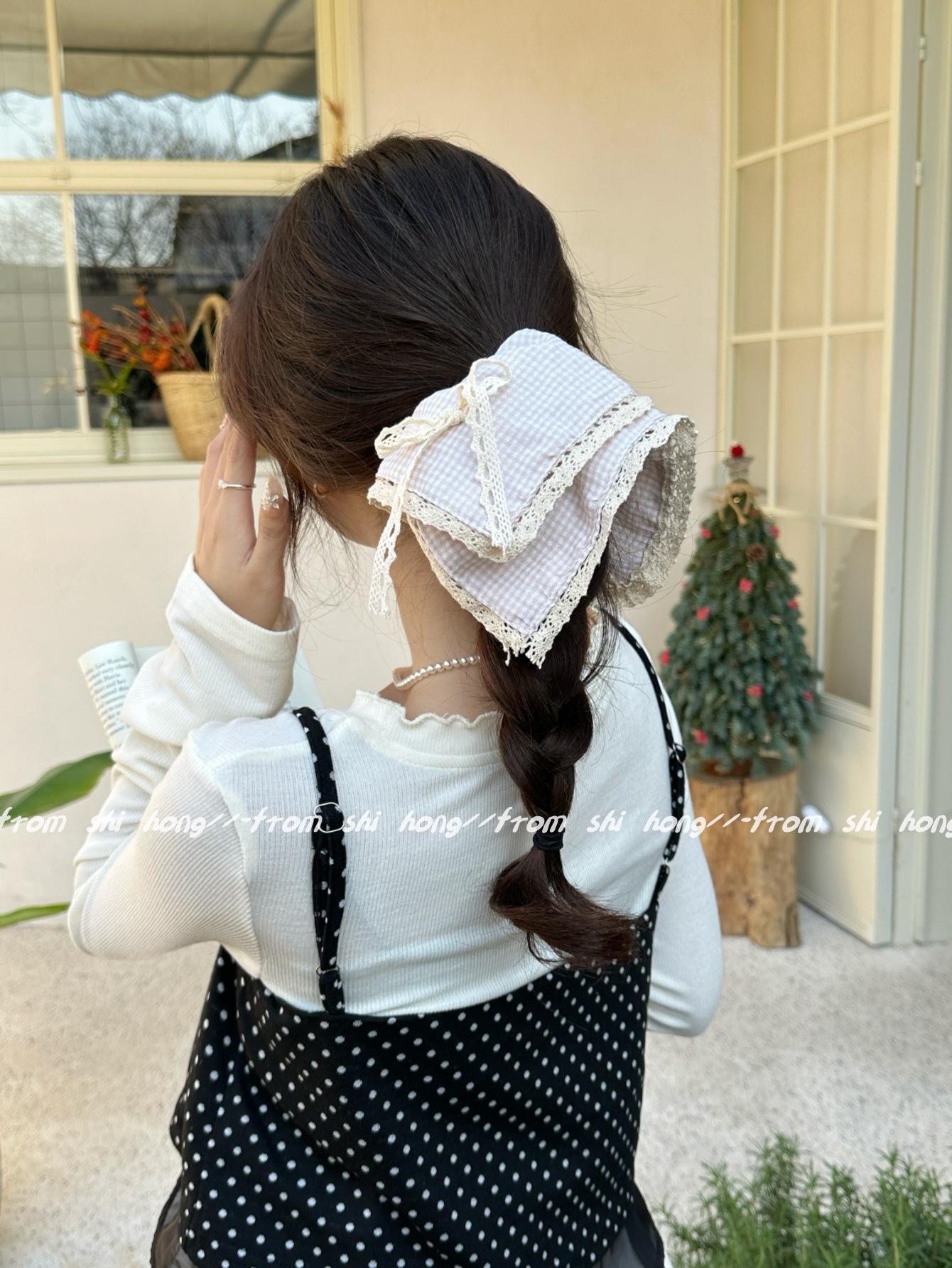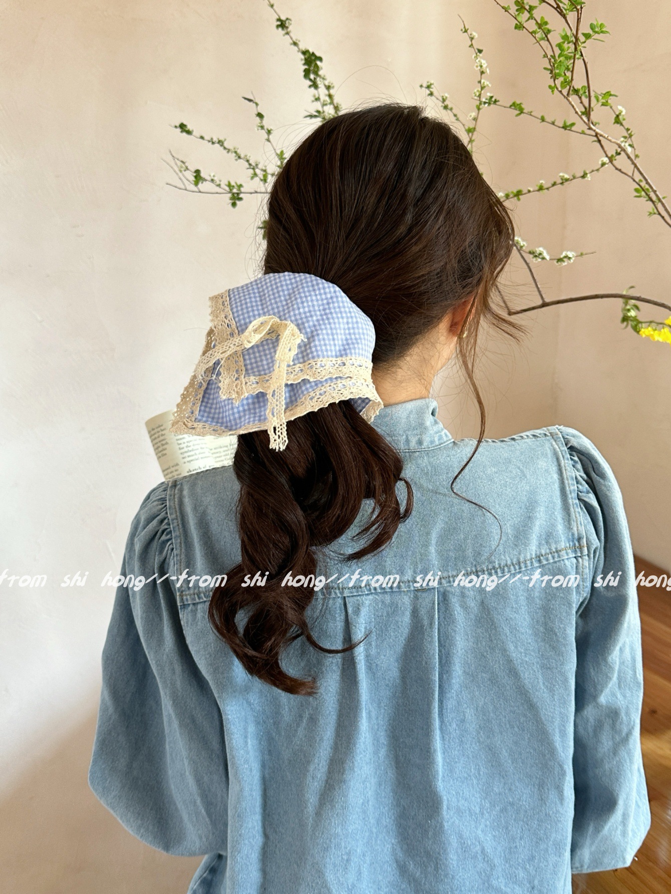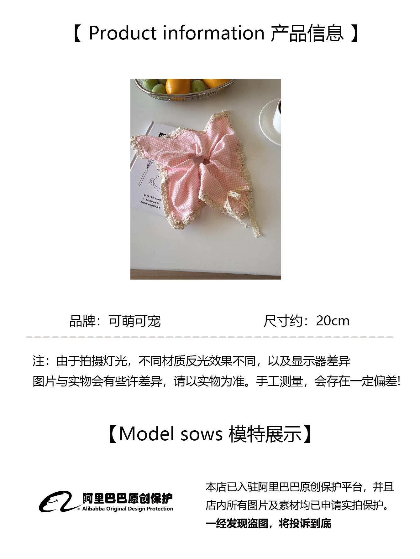 프랑스 스타일 격자 무늬 레이스 활 광장 광장 대형 직분 헤어 링 여성 한국 스타일 스퀘어 헤어 볼 헤어 로프