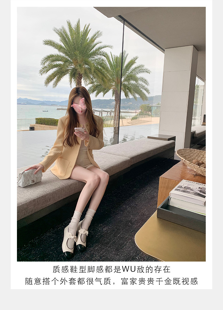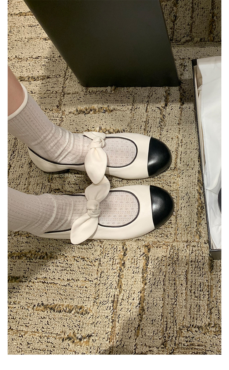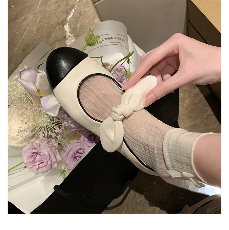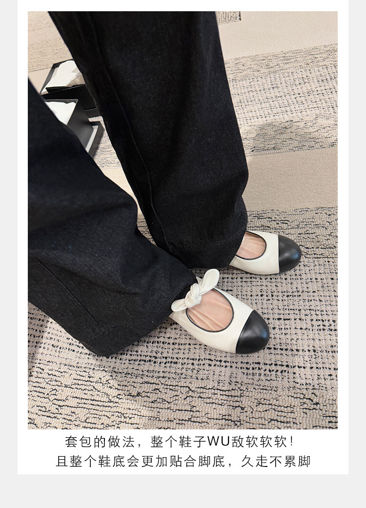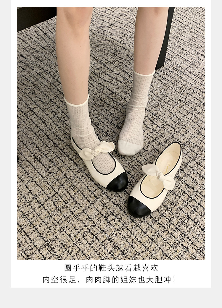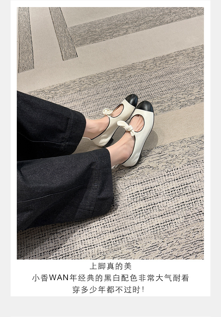 포도엄마와 똑같은 리본 스플라이스 라운드토 양가죽 스몰 프래그런스 스타일 여성용 봄용 다용도 발레 펌프스 메리제인 슈즈