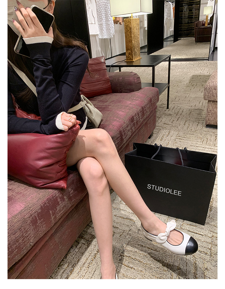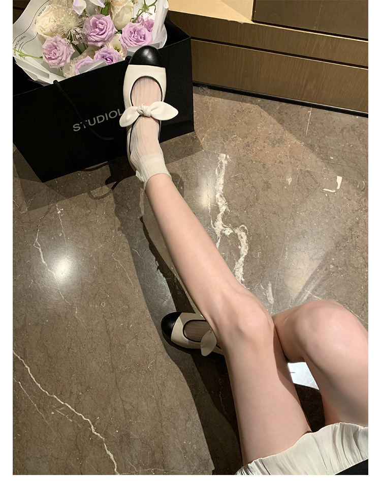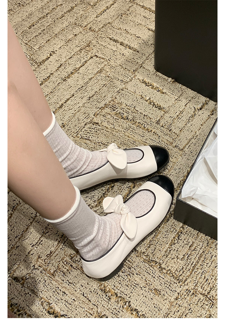 포도엄마와 똑같은 리본 스플라이스 라운드토 양가죽 스몰 프래그런스 스타일 여성용 봄용 다용도 발레 펌프스 메리제인 슈즈스토어 가기
