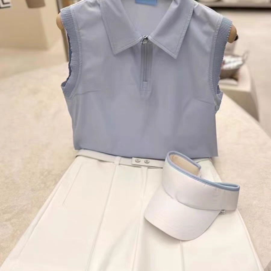 한국 골프 의류 여성 골프 유니폼 25 봄 여름 신작 라펠 하프 지퍼 스트레치 민소매 조끼 티셔츠