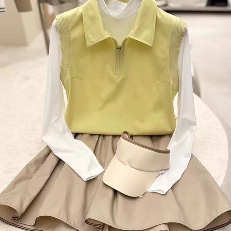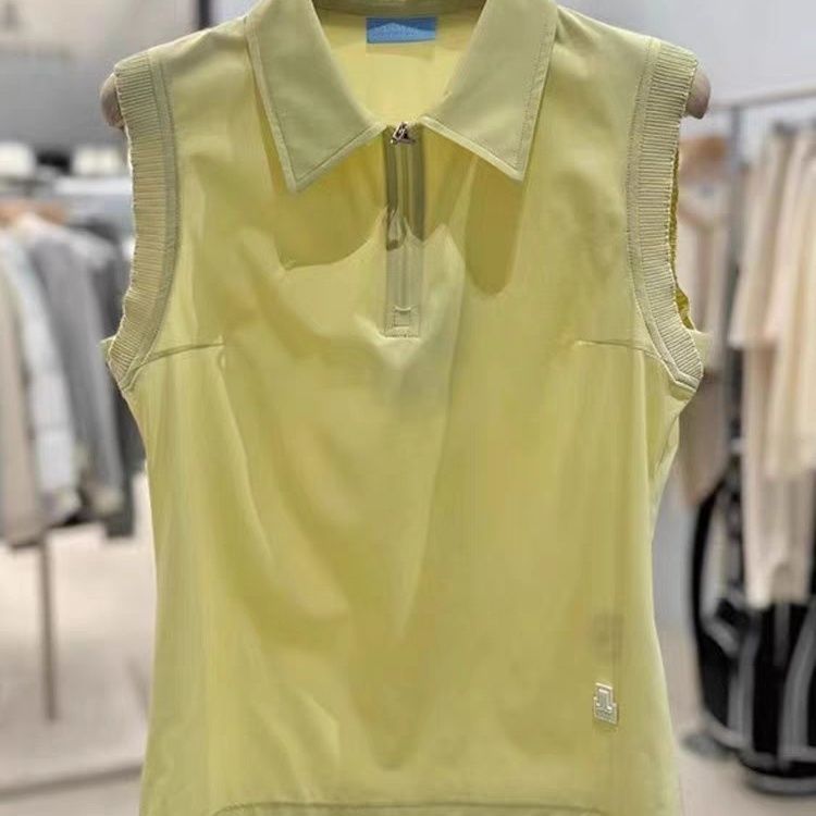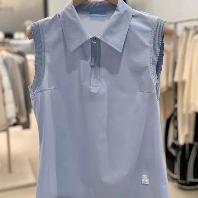 한국 골프 의류 여성 골프 유니폼 25 봄 여름 신작 라펠 하프 지퍼 스트레치 민소매 조끼 티셔츠스토어 가기