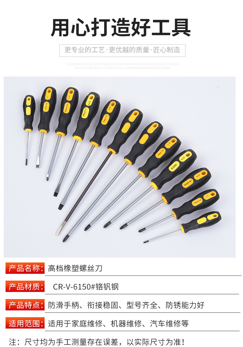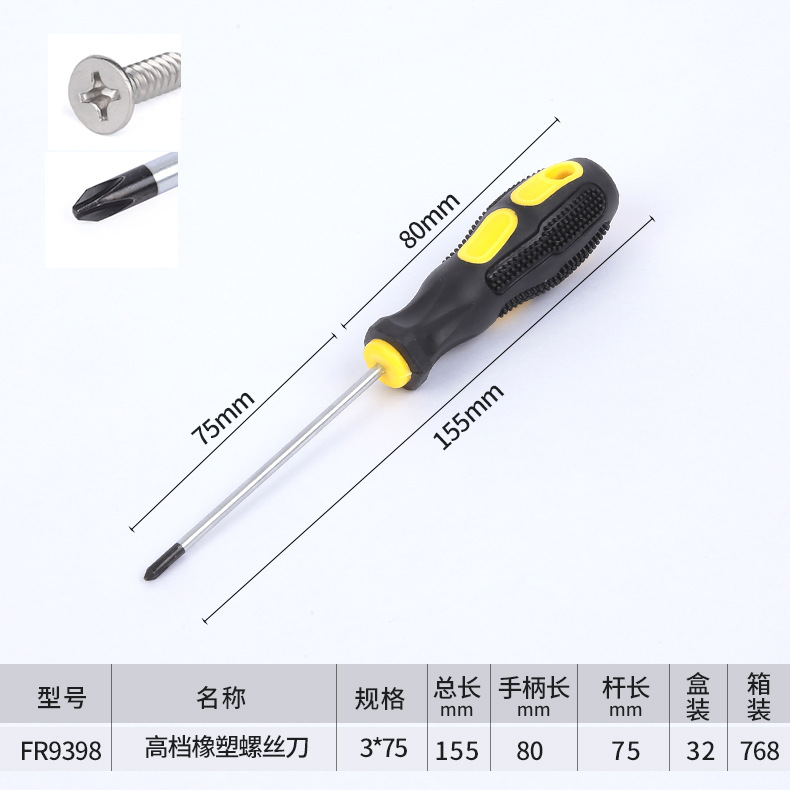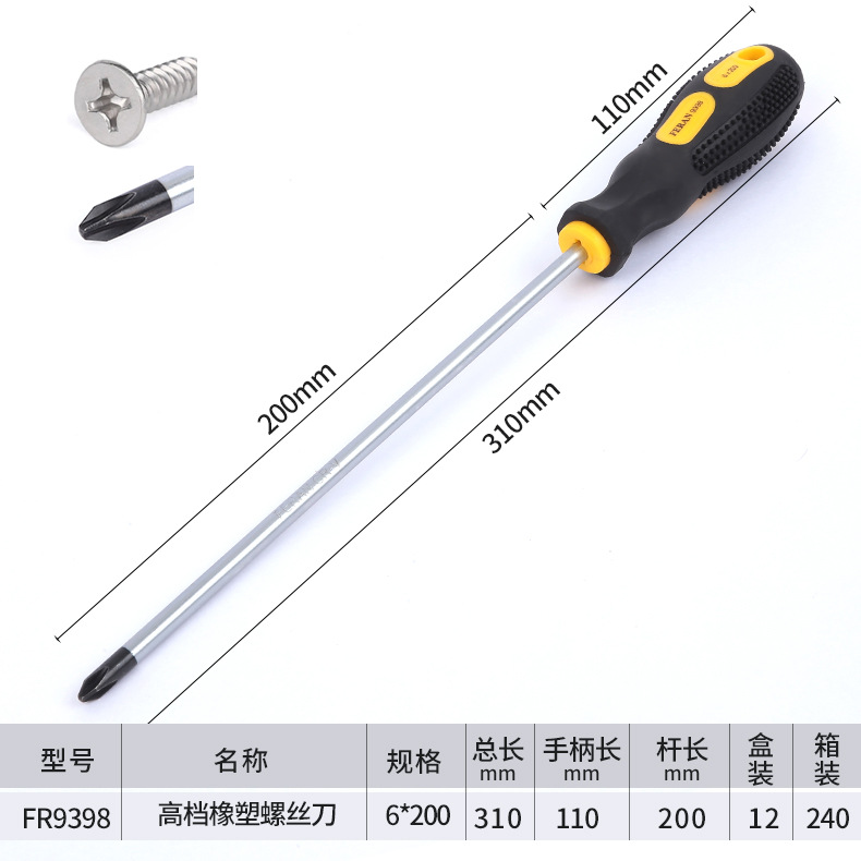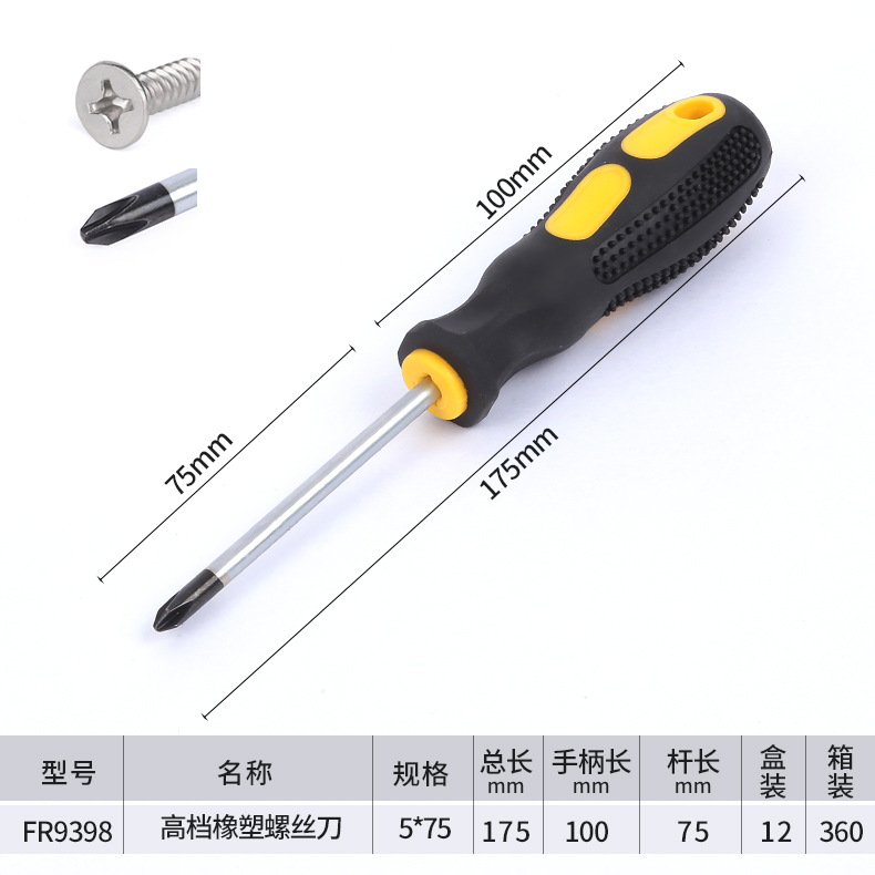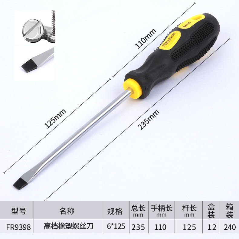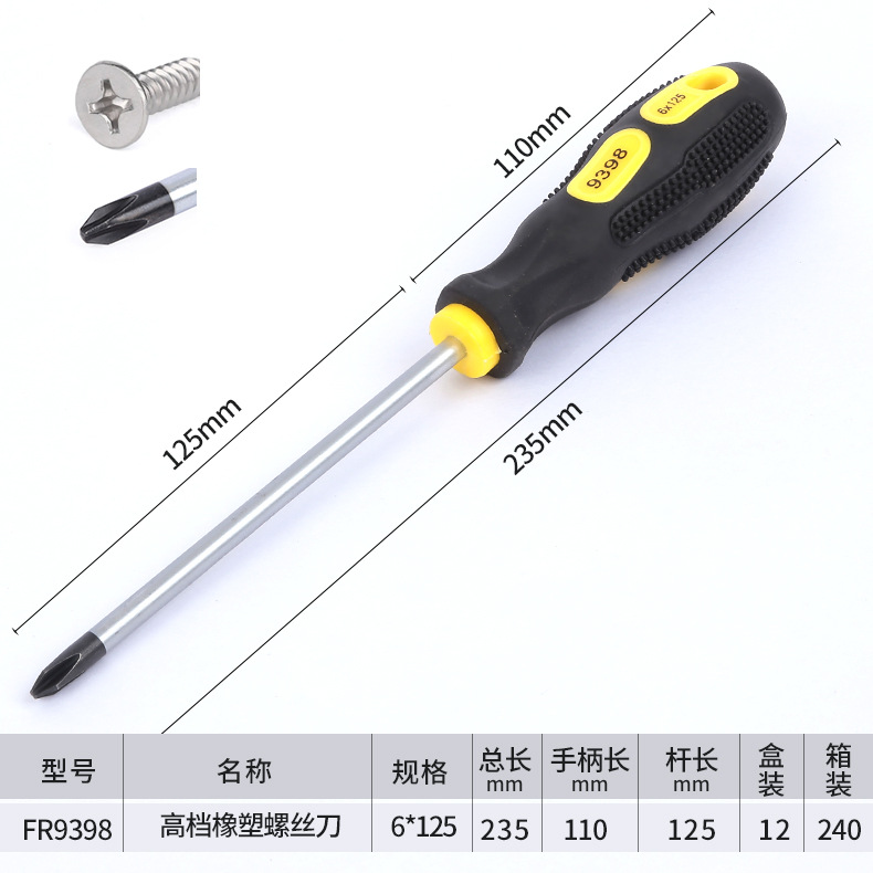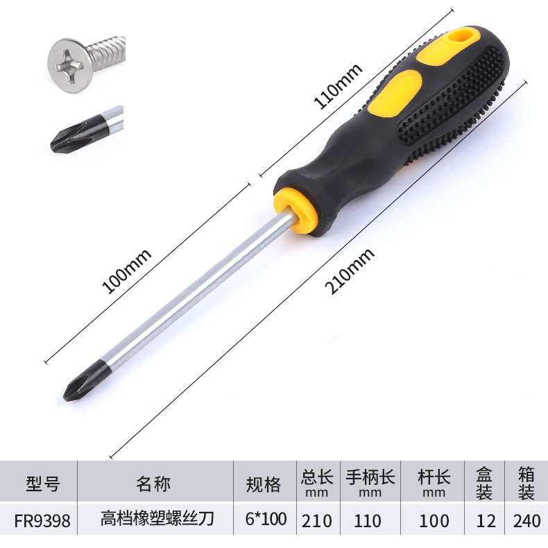 고급 마사지 핸들 크롬 바나듐 스틸 나이프 바 고무 크로스 한 단어 미끄럼 방지 디자인 스크루 드라이버 대량 생산