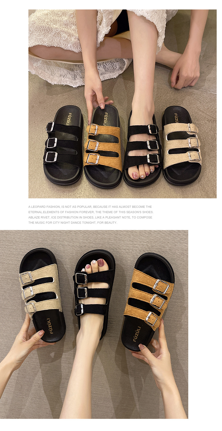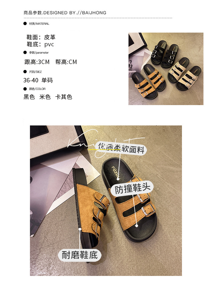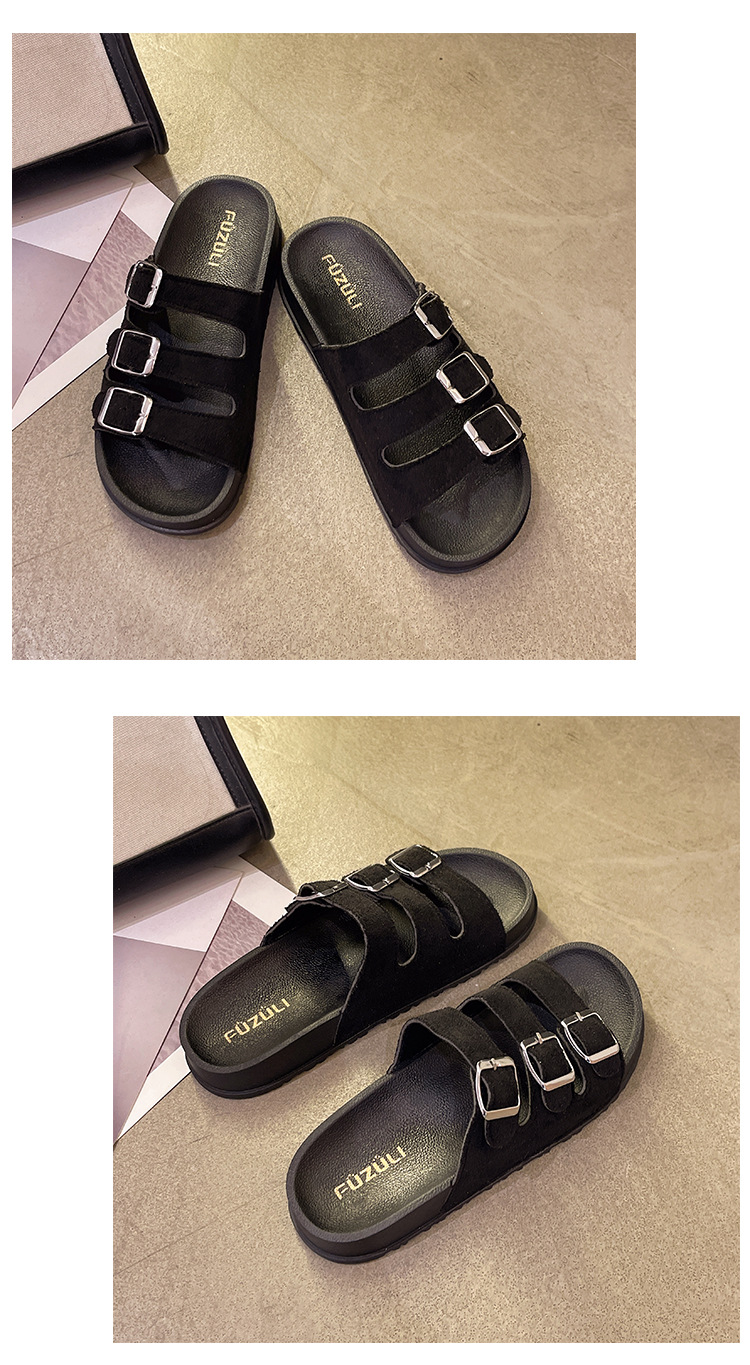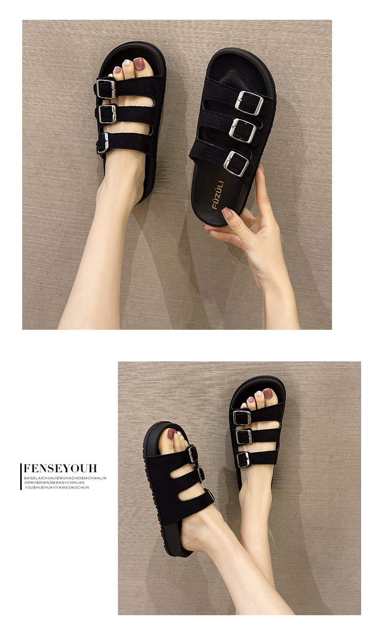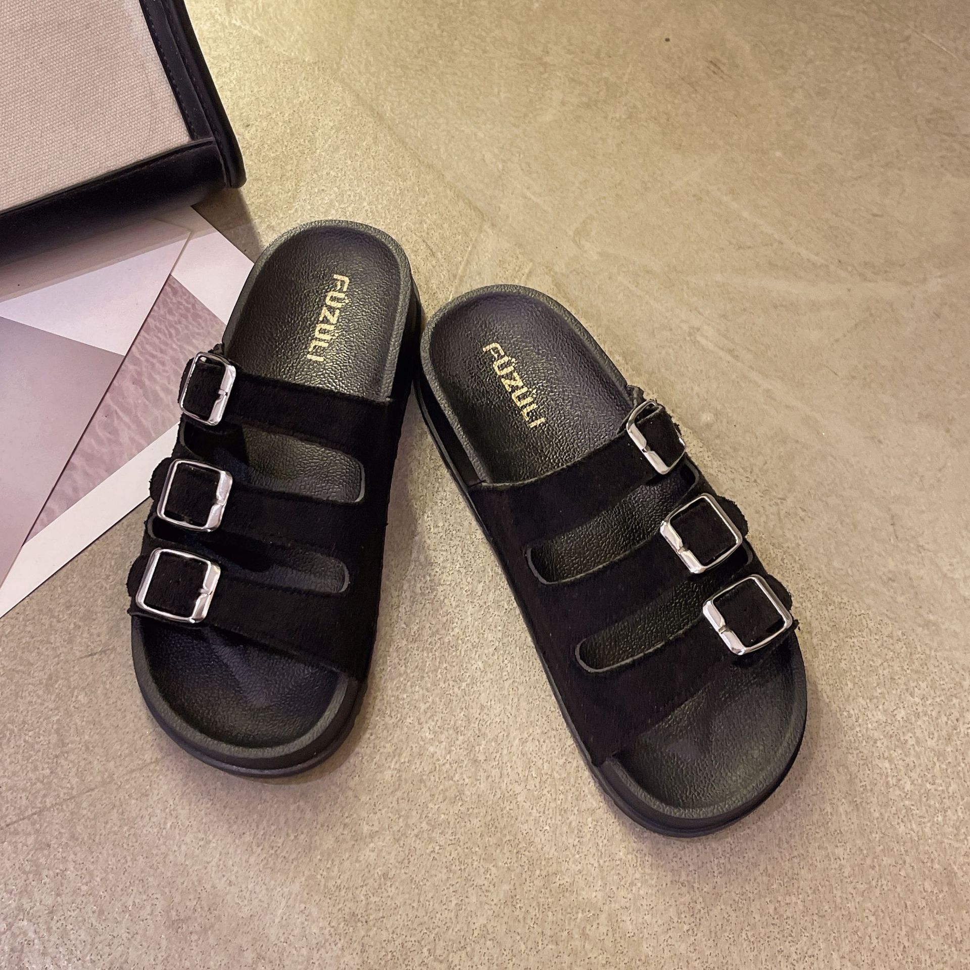 버클 슬리퍼 여성의 여름 외부 인터넷 인기 패션 캐주얼 두꺼운 바닥 슬리퍼 스위트 스타일 라운드 헤드 비치 샌들