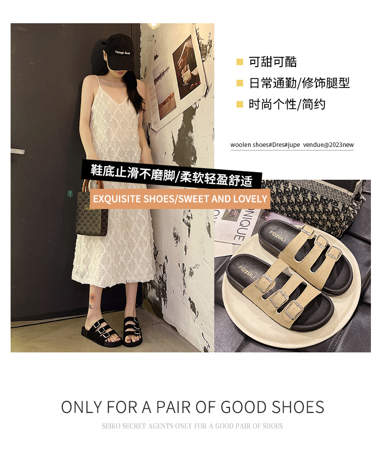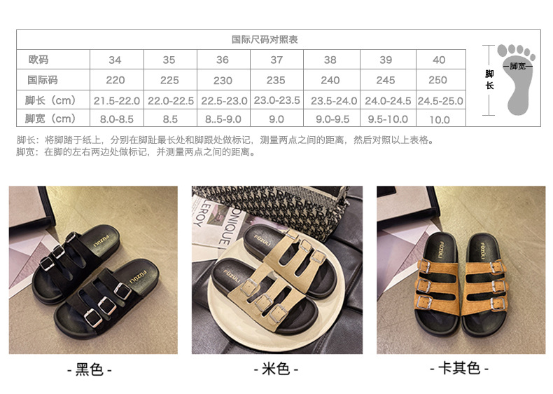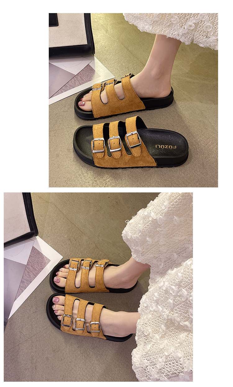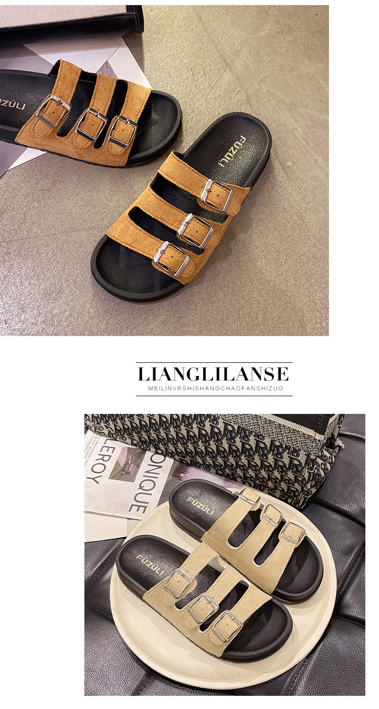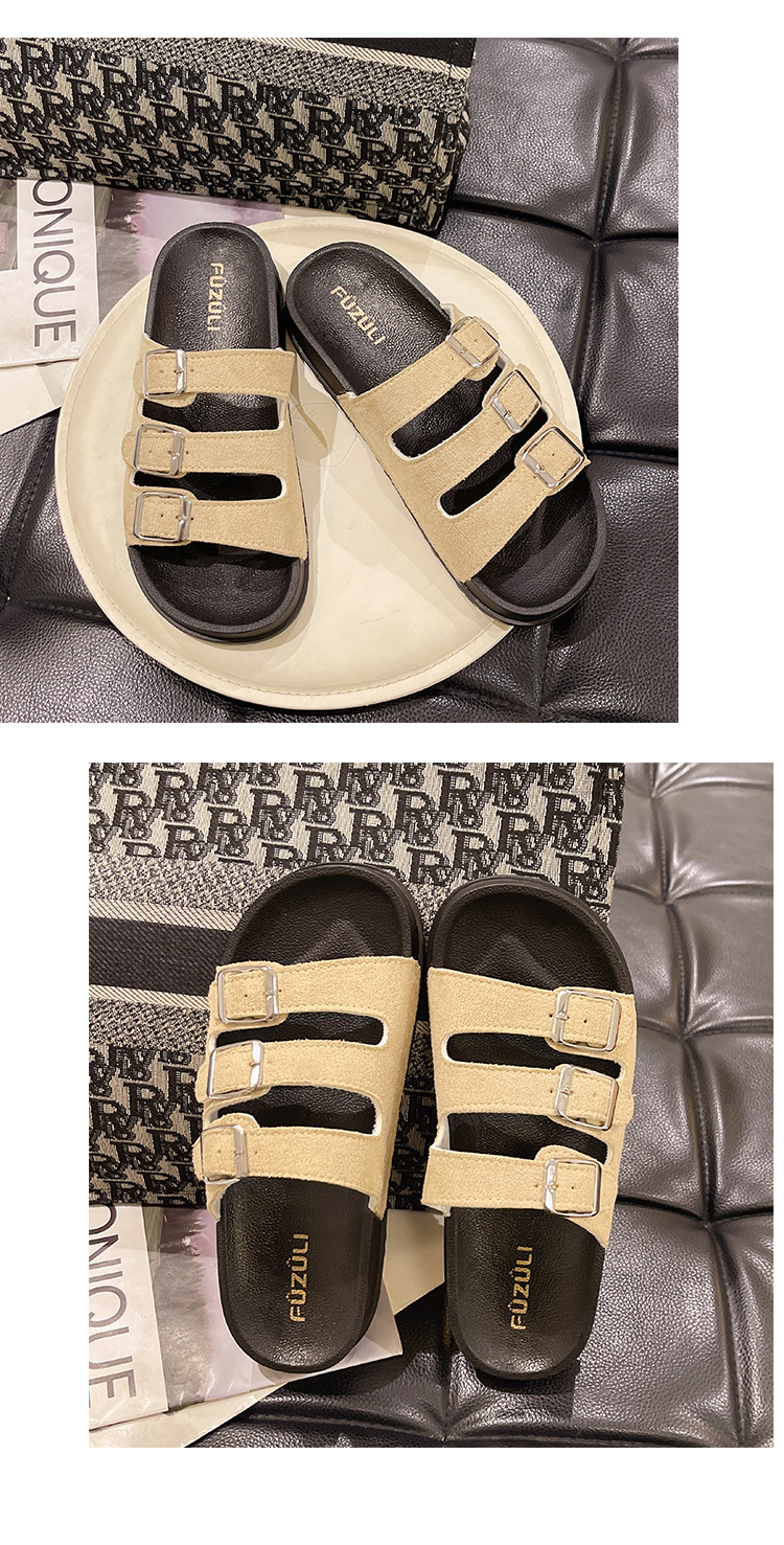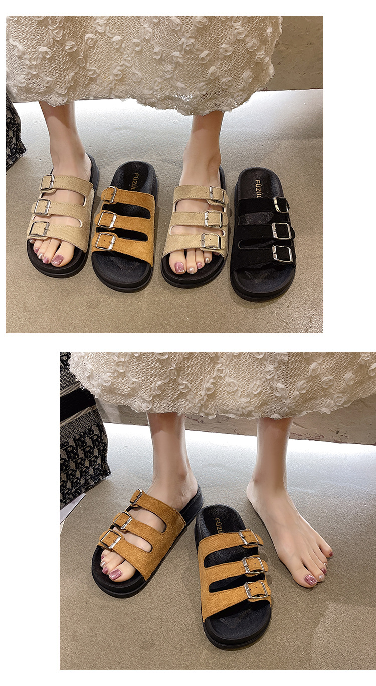 버클 슬리퍼 여성의 여름 외부 인터넷 인기 패션 캐주얼 두꺼운 바닥 슬리퍼 스위트 스타일 라운드 헤드 비치 샌들