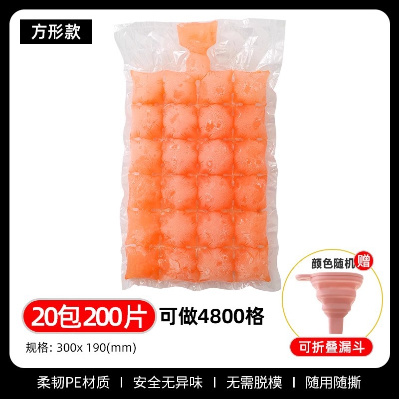 • 자체 밀봉 및 찢을 수 있는 얼음 트레이 백 [4800 그리드] 200개, 무료 깔때기