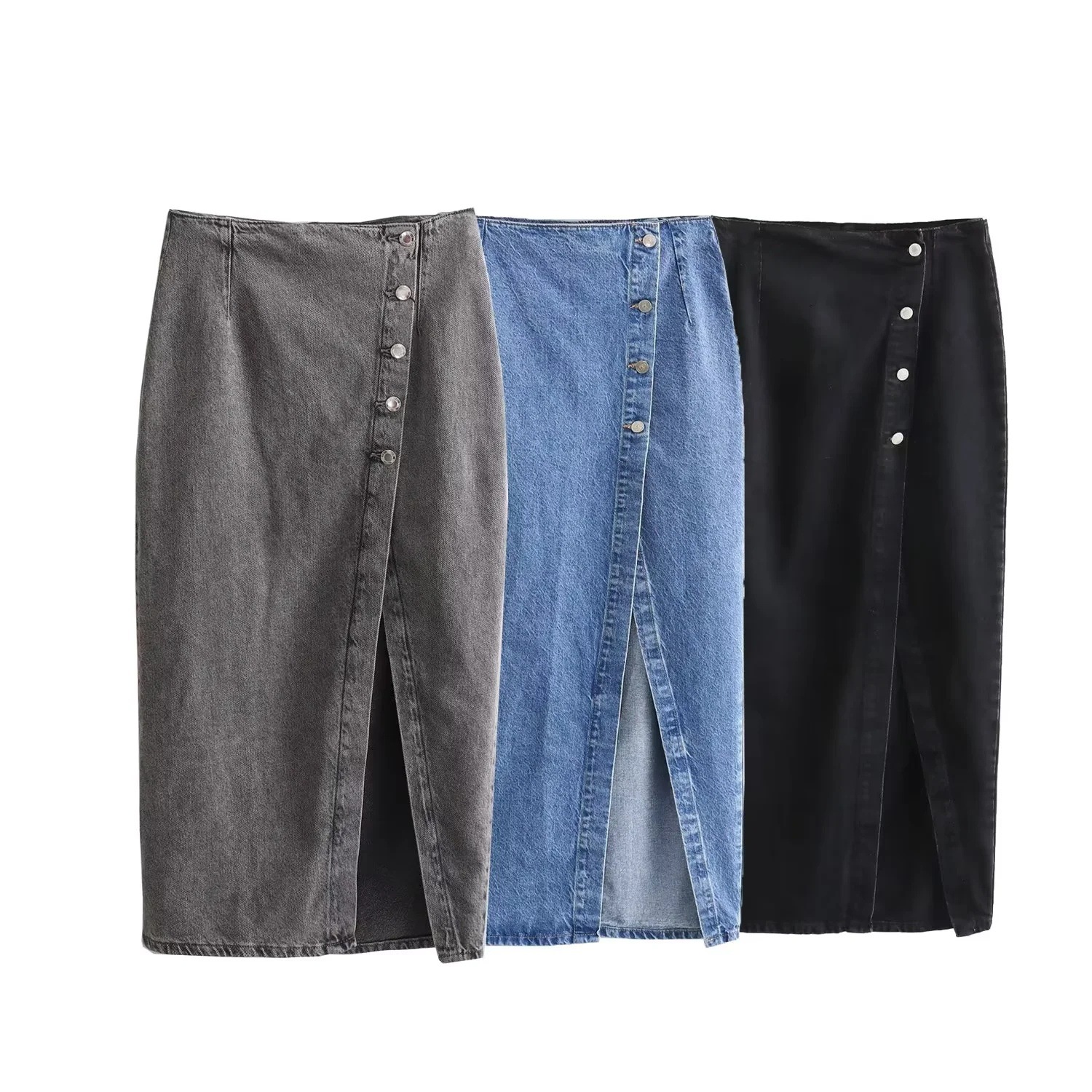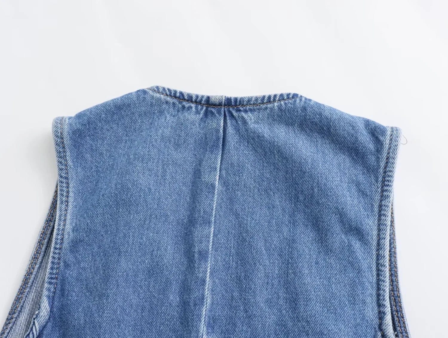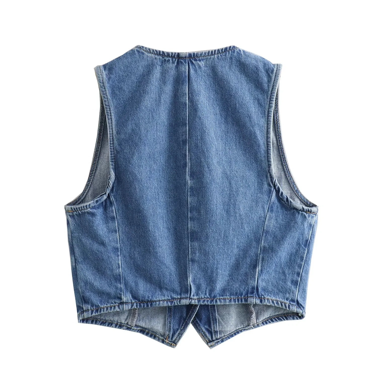 유럽과 미국을위한 국경 간 여성 AliExpress INS 폭발성 짧은 데님 조끼 더블 브레스트 미디 원피스 세트스토어 가기