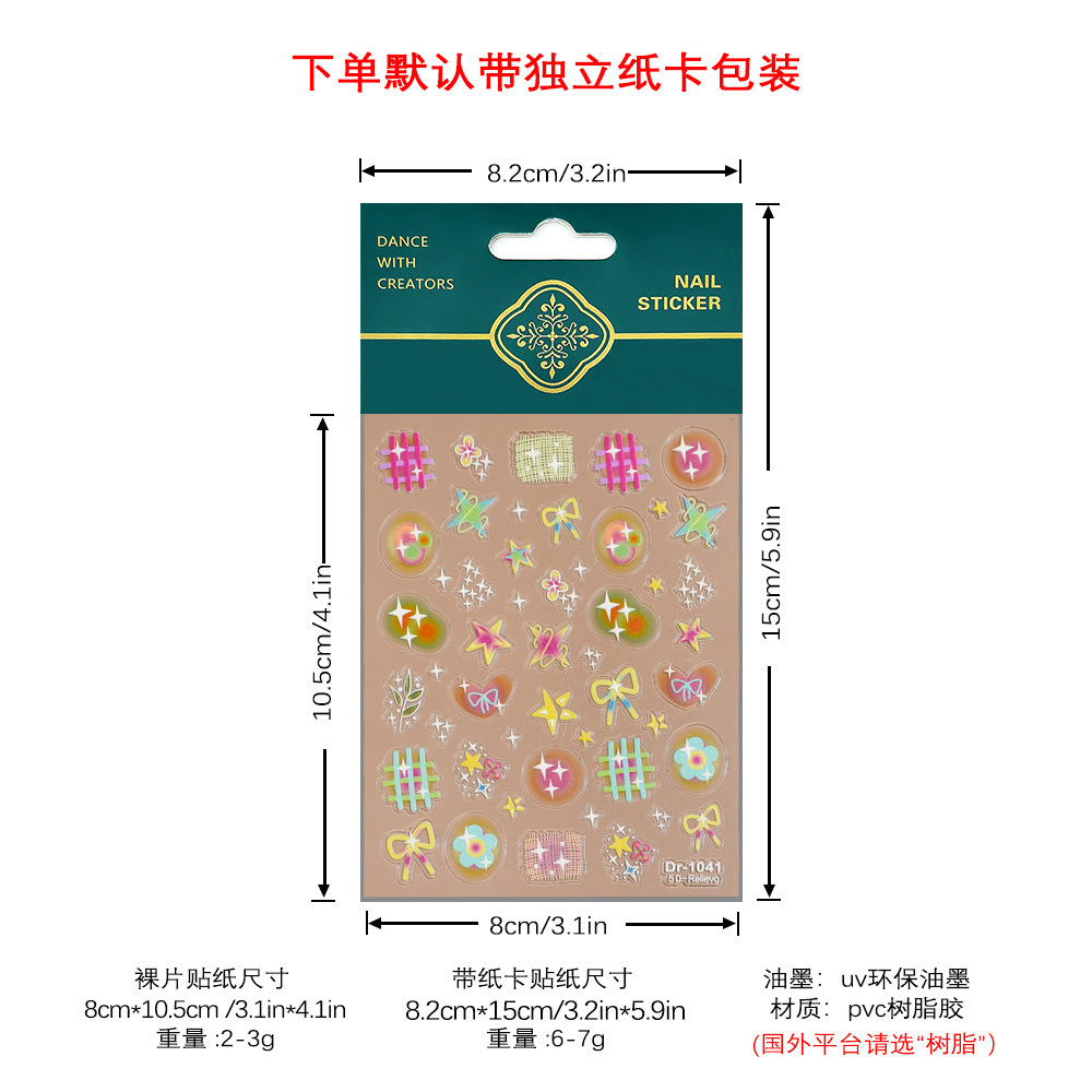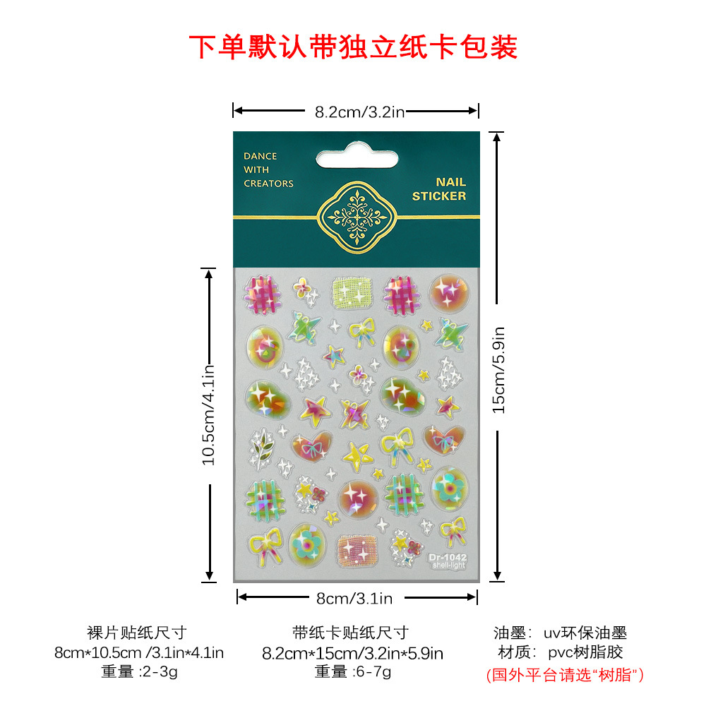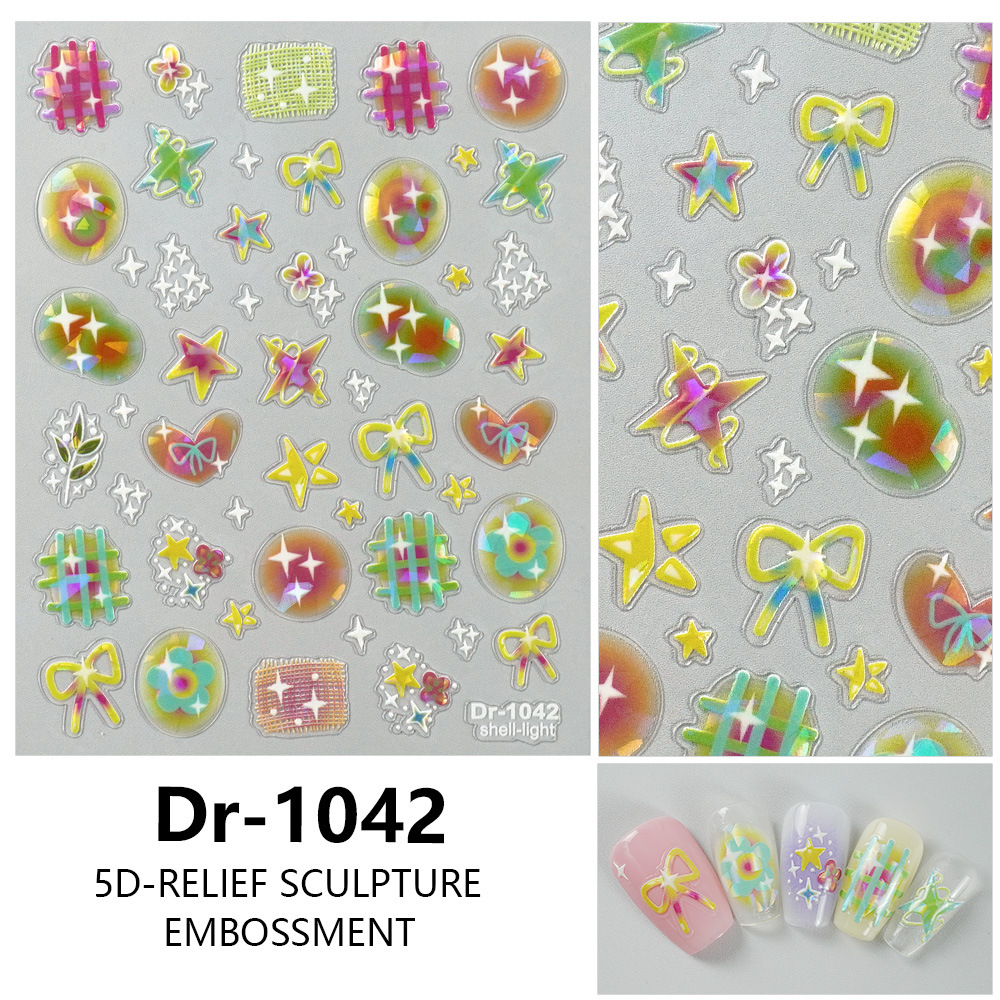 Redanco 새로운 5D 양각 인터넷 연예인 젤리 캔디 쉘 라이트 네일 아트 스티커 3D 네일 스티커 Dr-1042