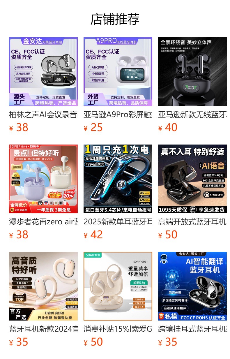 Amazon의 새로운 싱글 이어 블루투스 헤드셋 무선 이어폰 소음 감소 통화 대용량 전원 귀걸이형 비즈니스 AI 번역스토어 가기