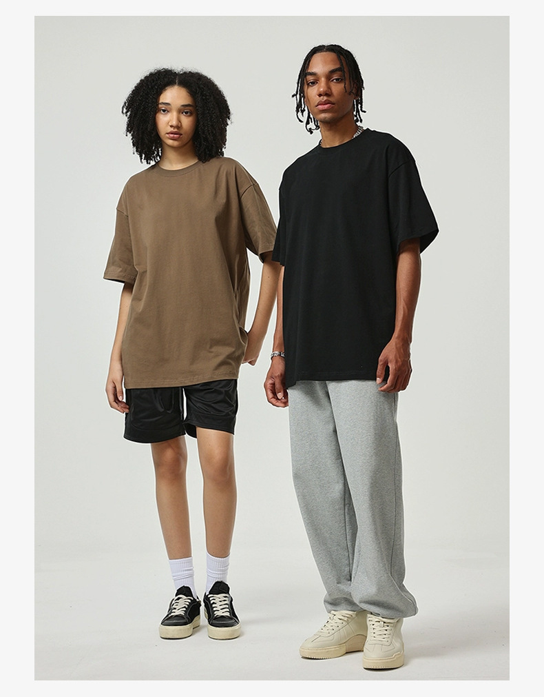 광저우 창 AE 남성복 2024 봄 여름 어스 컬러 310G 헤비급 티셔츠 남성 아메리칸 오버사이즈 솔리드 컬러스토어 가기