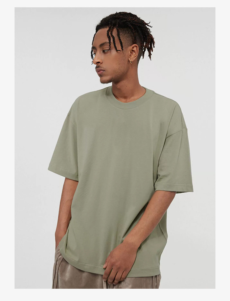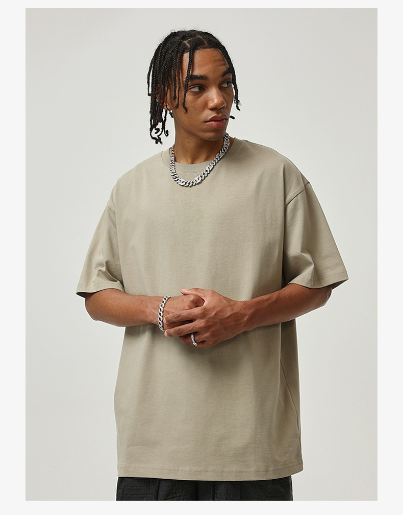 광저우 창 AE 남성복 2024 봄 여름 어스 컬러 310G 헤비급 티셔츠 남성 아메리칸 오버사이즈 솔리드 컬러