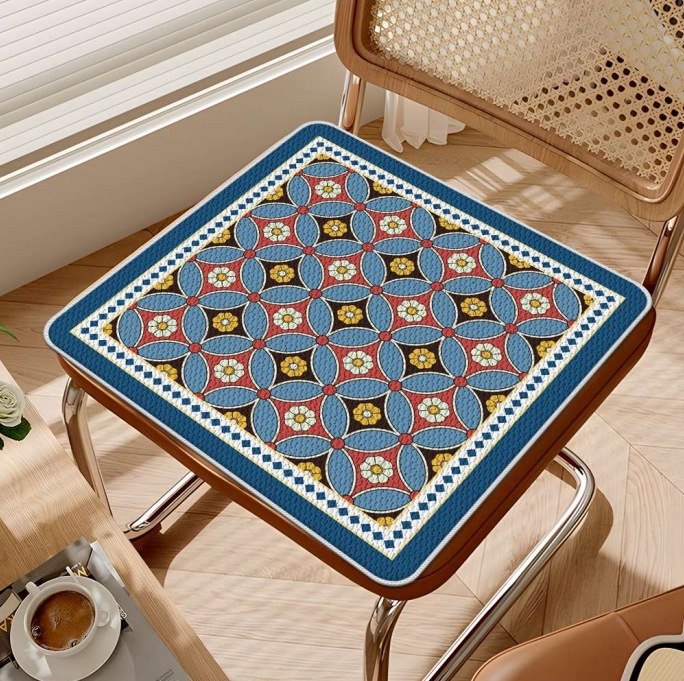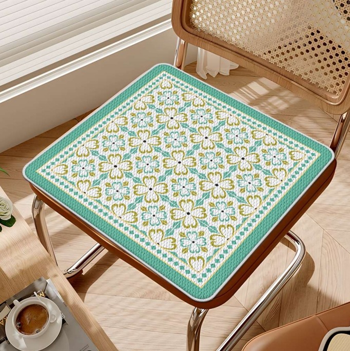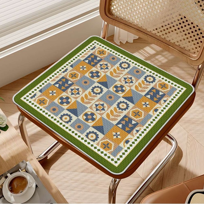 빈티지 격자 무늬 여름 쿠션 아이스 실크 쿠션 사무실 좌식 쿠션 콜드 의자 쿠션 비 슬립 통기성 지방 쿠션스토어 가기