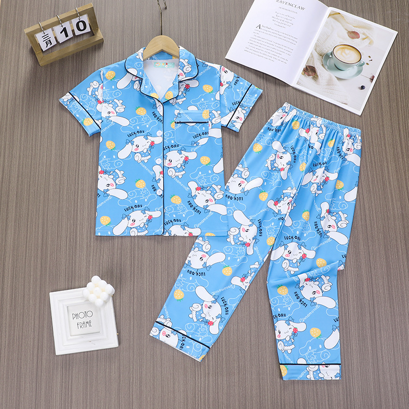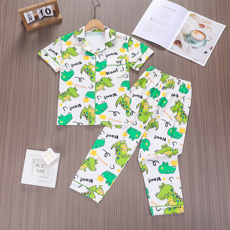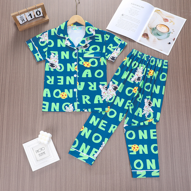 어린이 여름 새 옷깃 반팔 소년 항균 잠옷 중 · 대식 어린이 투피스 여아 홈 세트