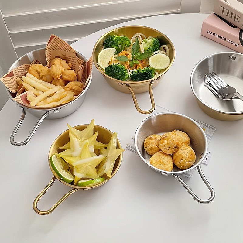 한국식 Ins 손잡이가 달린 두꺼운 스테인리스 양념 그릇 인터넷 연예인 가정용 핫 팟 딥 볼 스낵 과일 샐러드