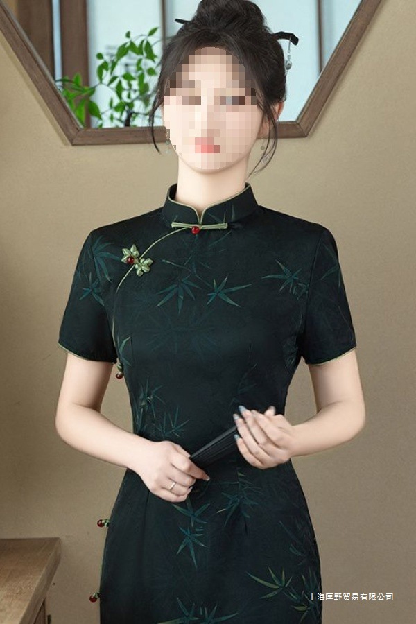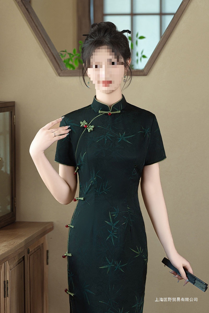 2025 새로운 복고풍 검은 년 대나무 잎 여름 개선된 젊은 중국 스타일 치파오스토어 가기