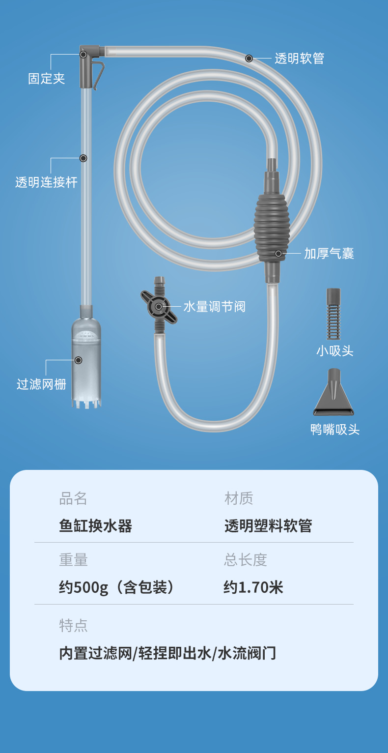 어항 물 교환기 물고기 청소 호스 흡입 수동 모래 세척 큰 탱크 배설물 사이펀 도구 청소 펌핑 유물