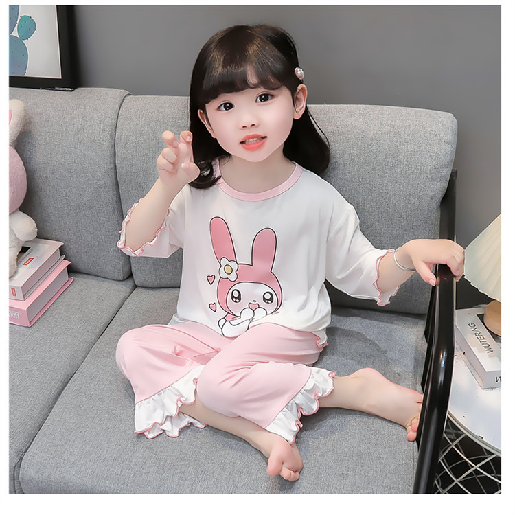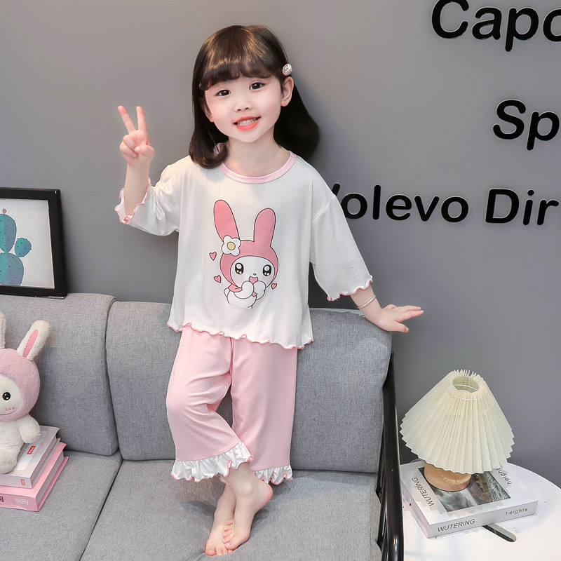 어린이 모달 잠옷 소녀 여름 얇은 집 옷 세트 새 소녀 아기 여름 에어컨 옷