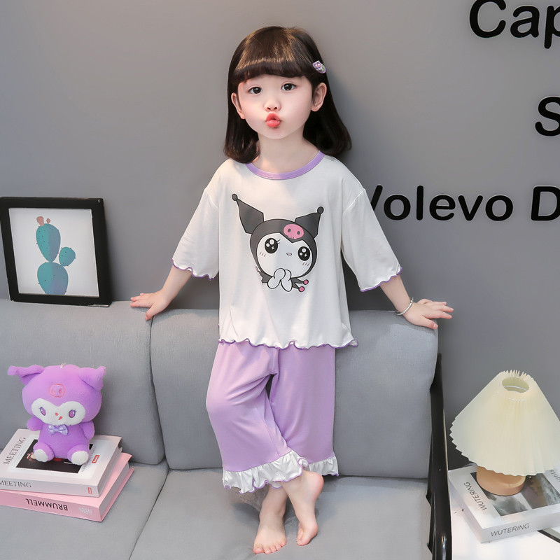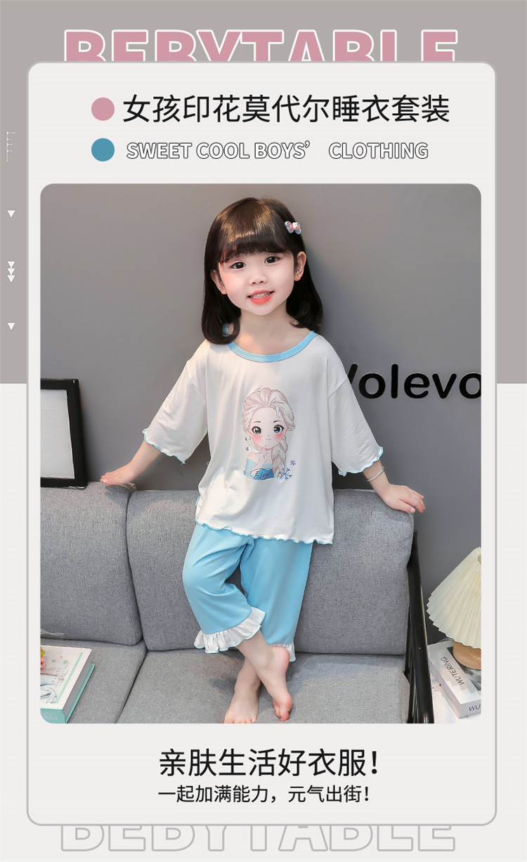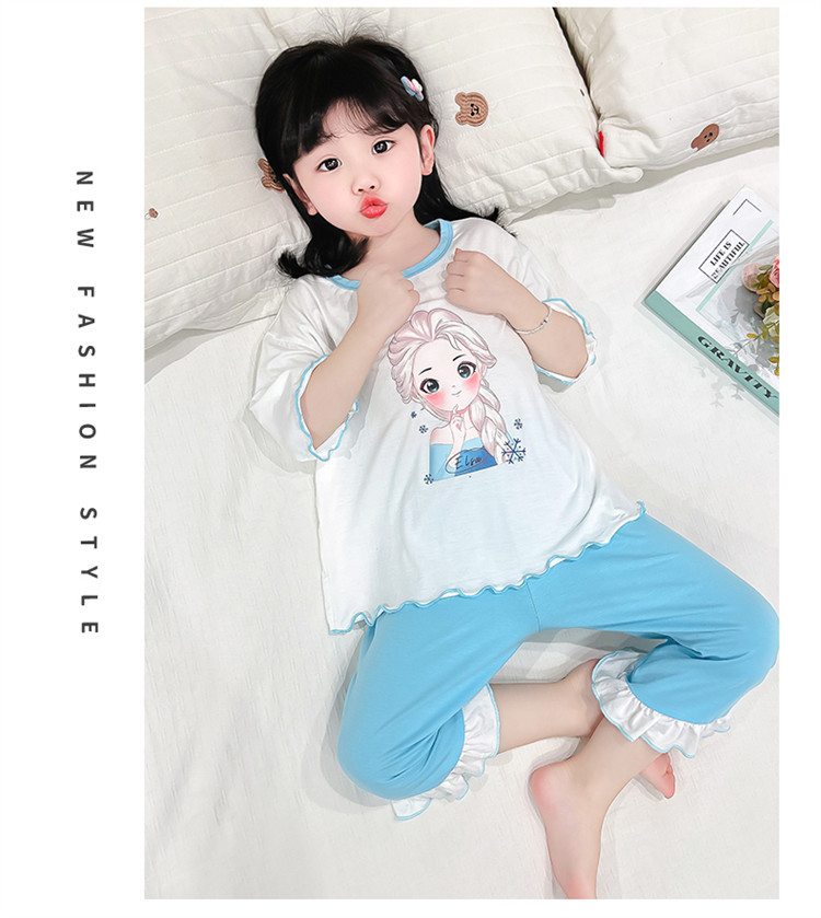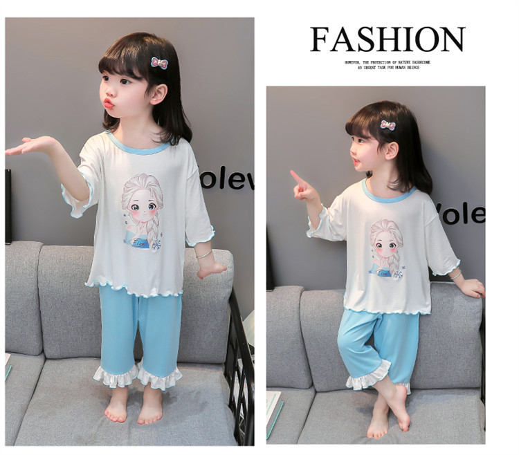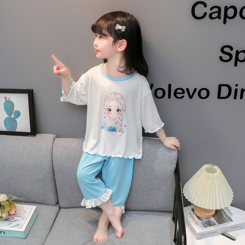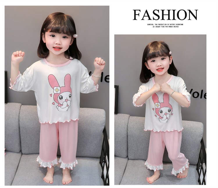 어린이 모달 잠옷 소녀 여름 얇은 집 옷 세트 새 소녀 아기 여름 에어컨 옷스토어 가기