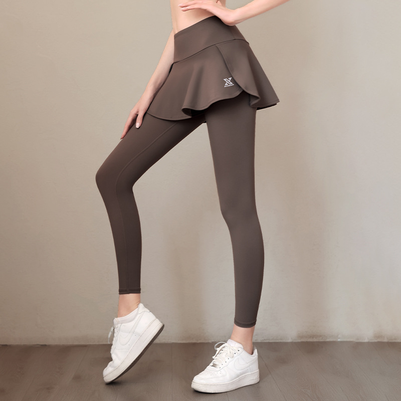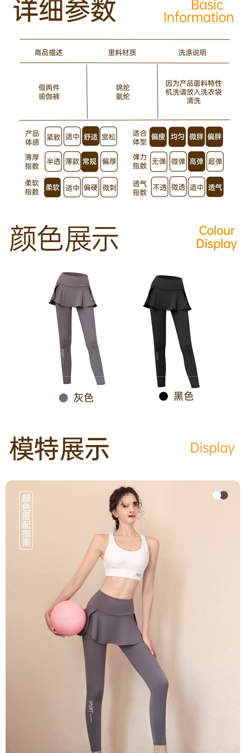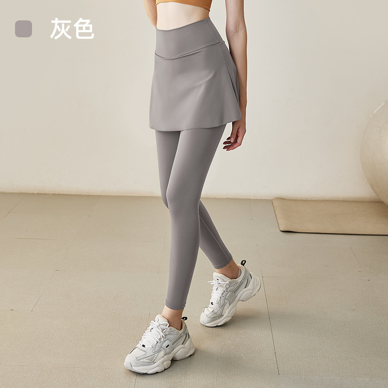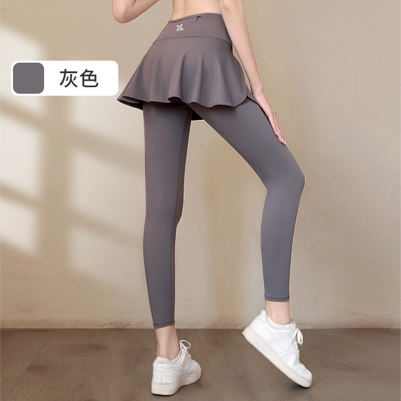 여성용 가짜 투피스 스포츠 바지, 봄 여름 하이웨이스트 노출 방지 피트니스 팬츠, 배드민턴 슈트, 러닝 요가 팬츠, 스커트, 고탄성