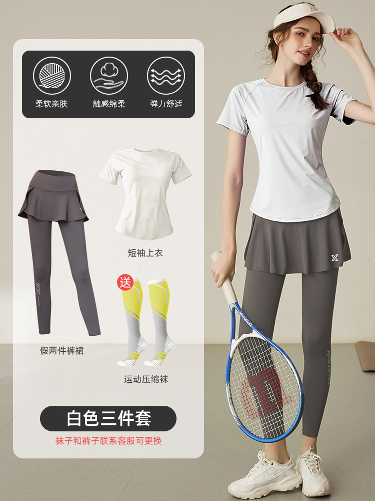 • 정장 [흰색 짧은 T + 회색 바지] 피트니스 양말을 무료로 주문하세요