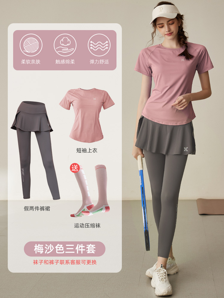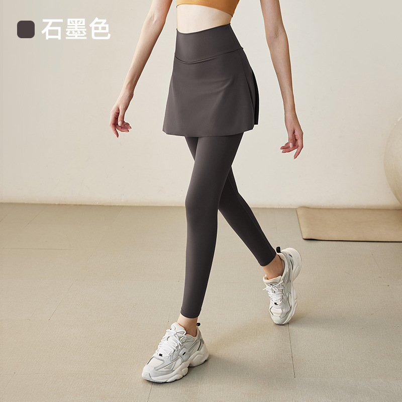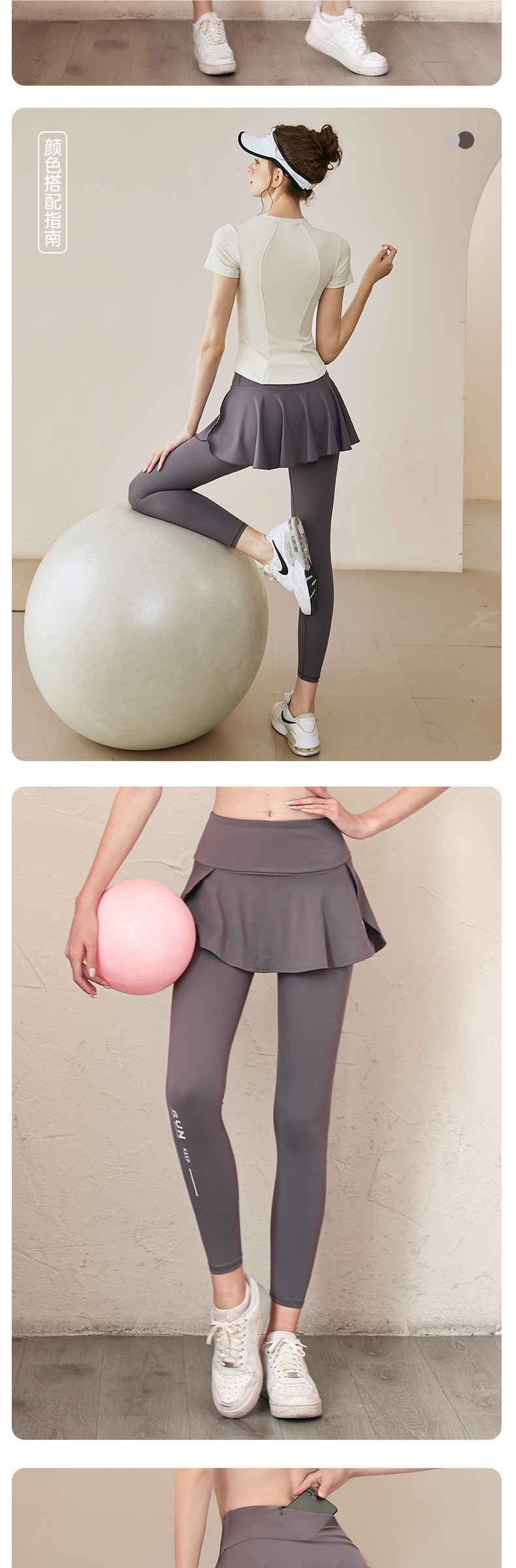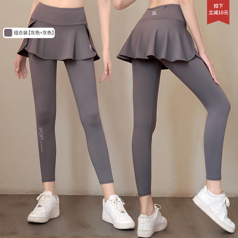 여성용 가짜 투피스 스포츠 바지, 봄 여름 하이웨이스트 노출 방지 피트니스 팬츠, 배드민턴 슈트, 러닝 요가 팬츠, 스커트, 고탄성스토어 가기