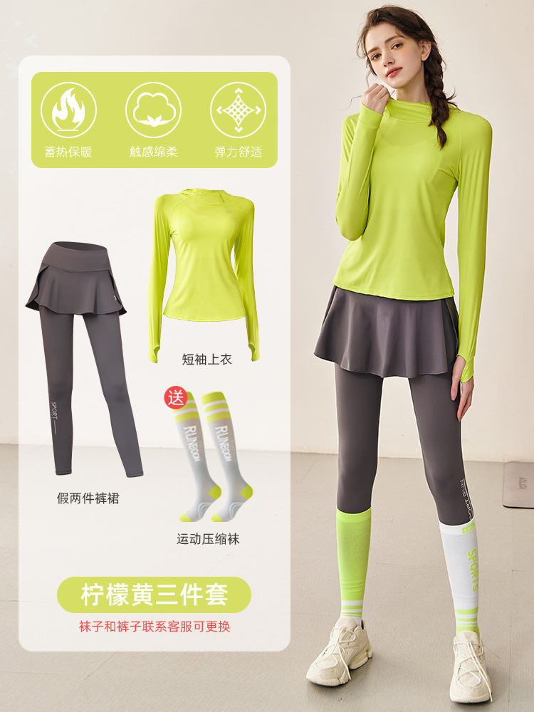 • 슈트 [레몬옐로우 후드리스 자켓 + 그레이 팬츠 스커트] 피트니스 양말 무료주문
