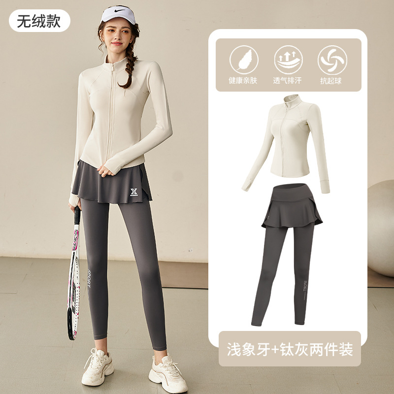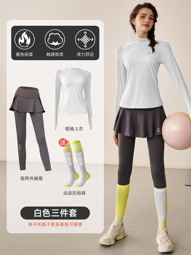 • 정장 [흰색 후드자켓 + 그레이 팬츠 스커트] 피트니스 양말 무료주문