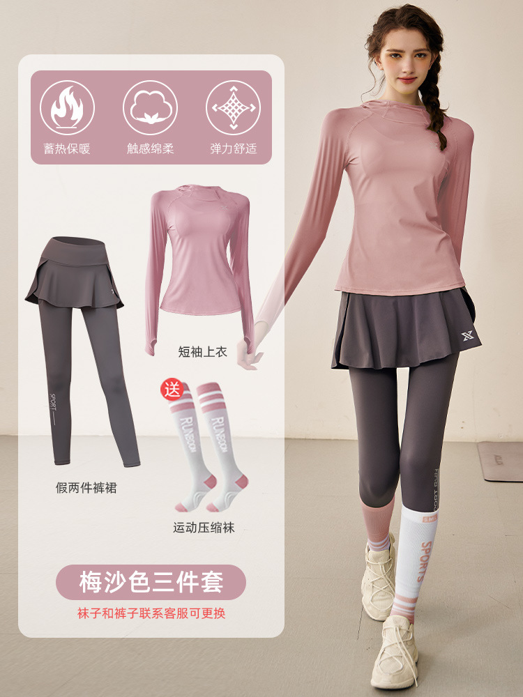 • 슈트 [연근보라색+회색치마바지] 사계절 스타일