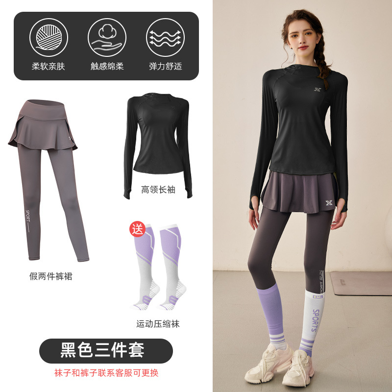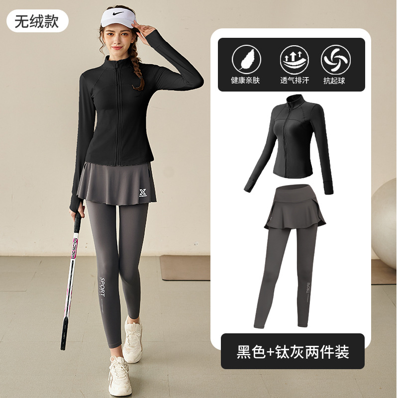 • 슈트 [블랙 후드자켓 + 그레이 팬츠, 스커트] 피트니스 양말 무료주문
