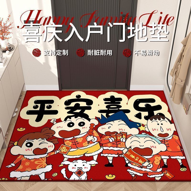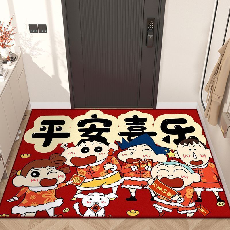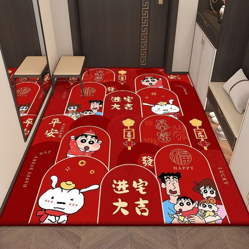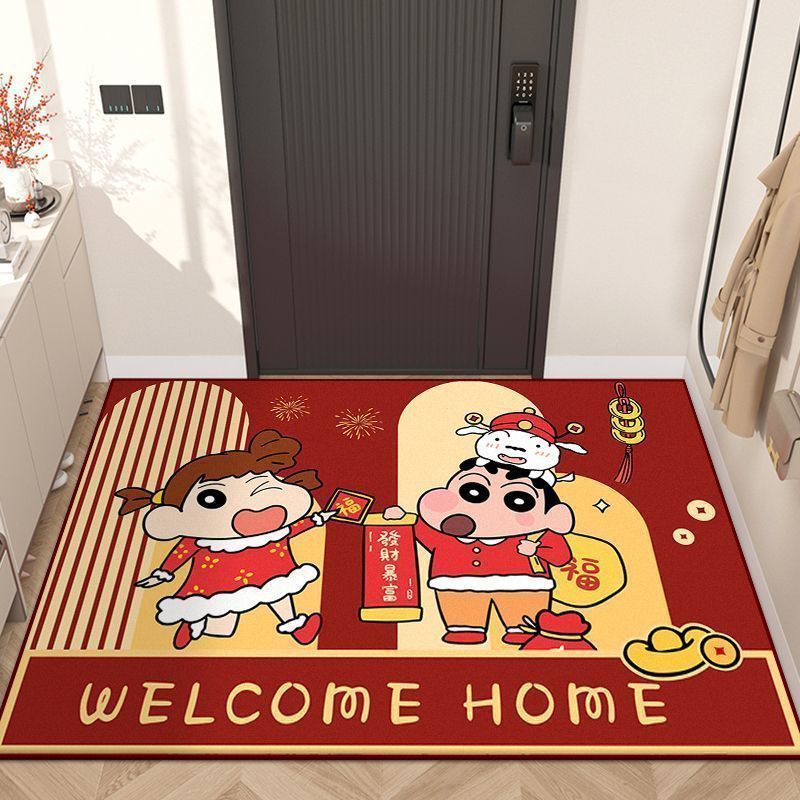 ∝빨간색 현관문 바닥매트, 가정용 크레용신짱 현관문 발매트, 만화 얼룩 방지 및 내마모성 도어매트 MY