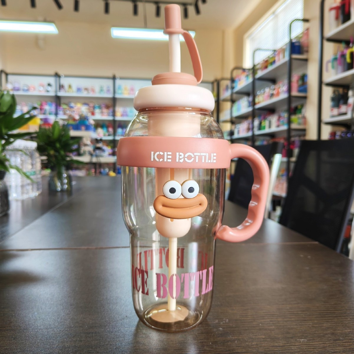 대용량 아이스 컵 높은 색상 가치 소녀 큰 맥 배꼽 컵 빨대 차 배수 향이 나는 차 플라스틱 컵으로 편리합니다.스토어 가기