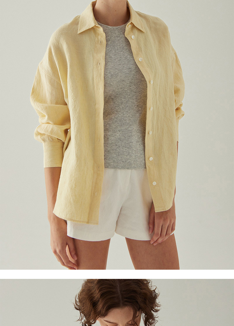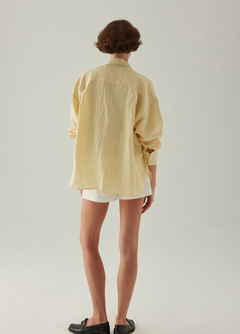 100% 린넨 사이드 슬릿 셔츠 여성용 프렌치 캐주얼 루즈 탑 재킷 2025 가을 뉴 루즈 셔츠스토어 가기