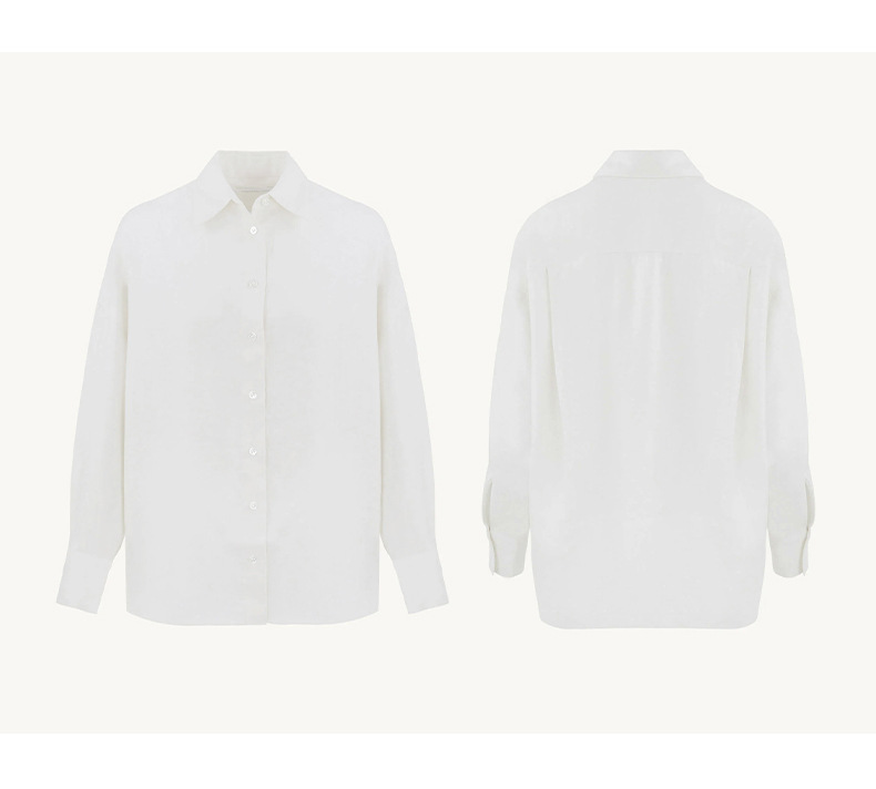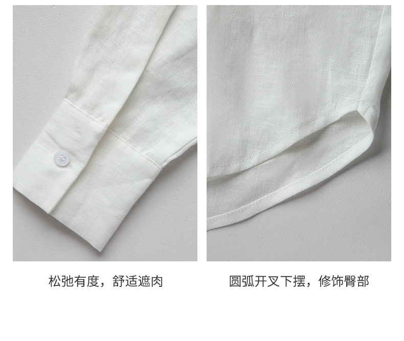 100% 린넨 사이드 슬릿 셔츠 여성용 프렌치 캐주얼 루즈 탑 재킷 2025 가을 뉴 루즈 셔츠