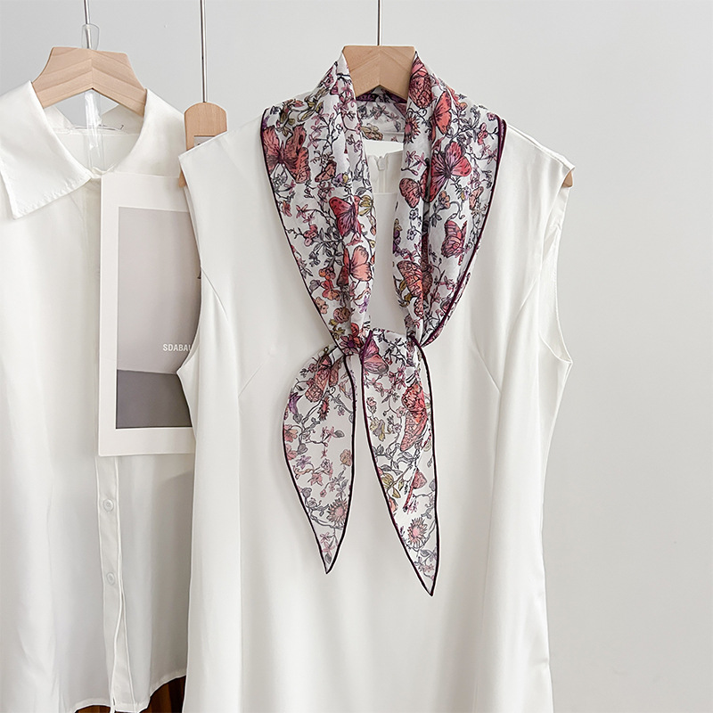 새로운 Ouruo 스타일 올 매치 나비 작은 스카프 여성의 얇은 봄과 여름 장식 실크면 삼각형 스카프 선 스크린 작은 스카프