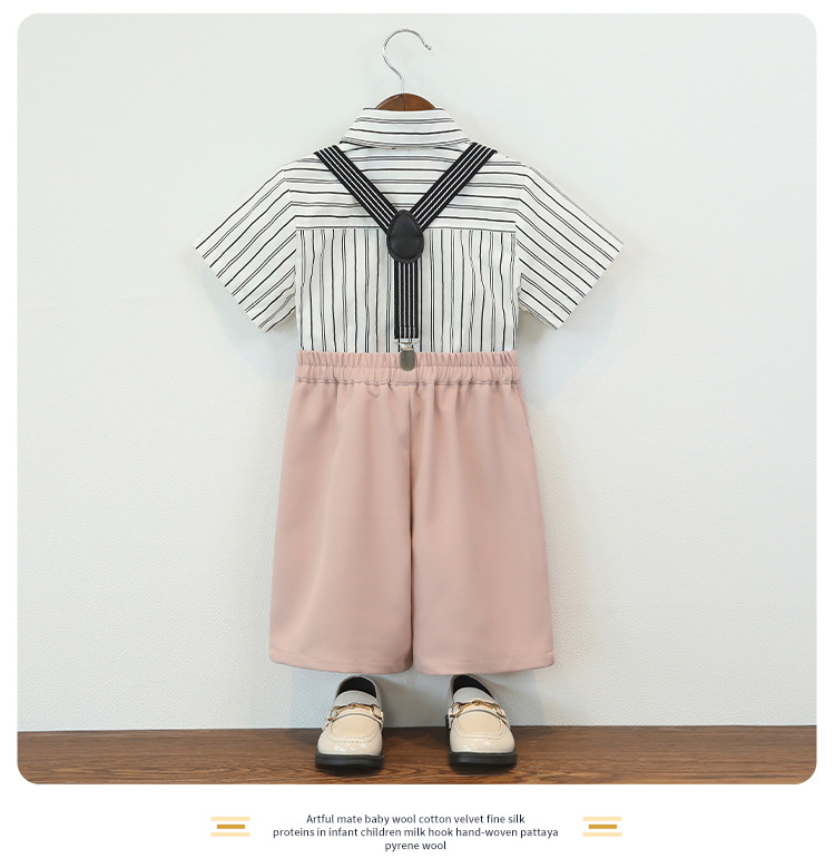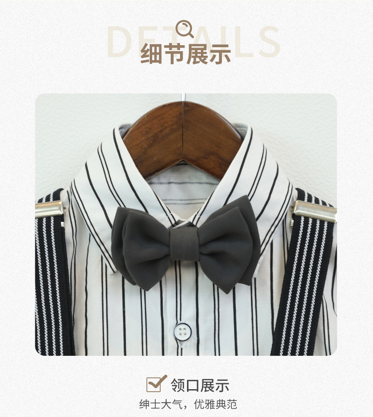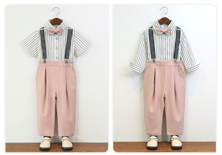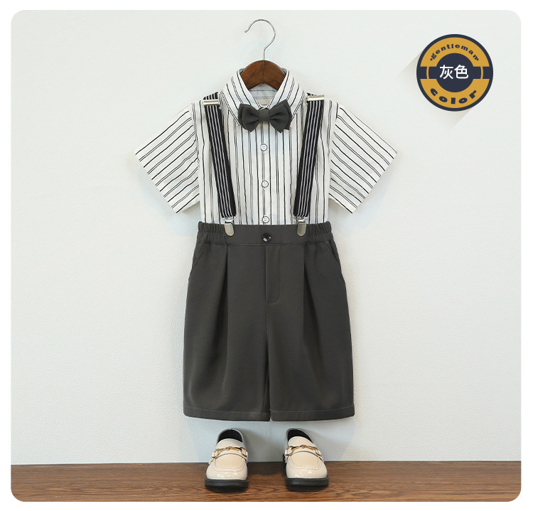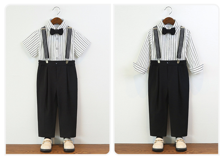 • 그레이 팬츠 4종 세트 (반팔 셔츠+바지+멜빵+나비넥타이)