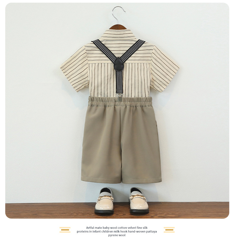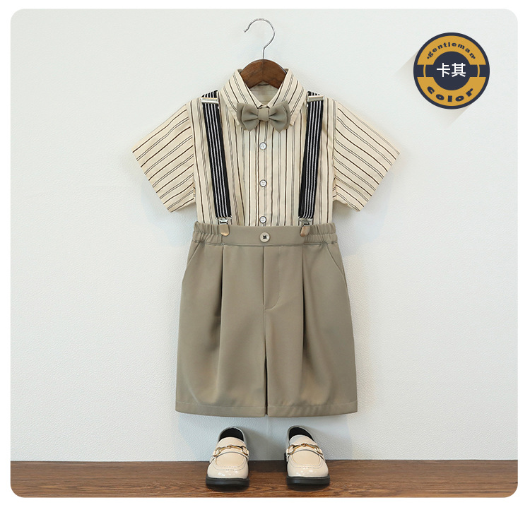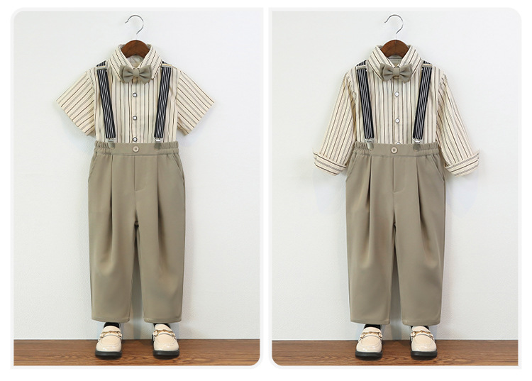 • 카키 4종 세트 (반팔셔츠+반바지+멜빵+나비넥타이)