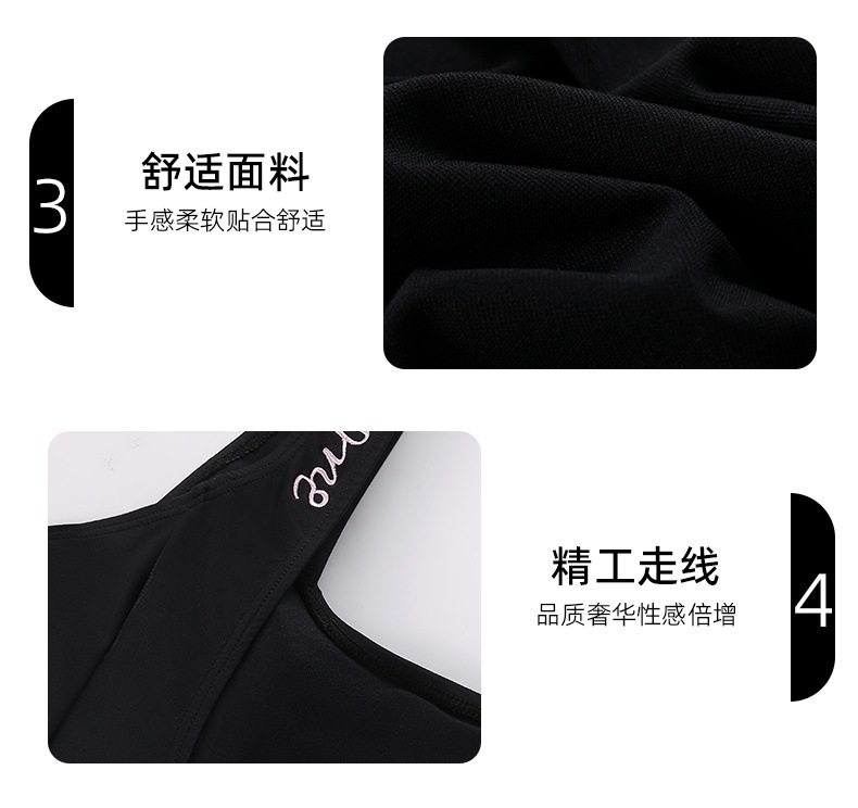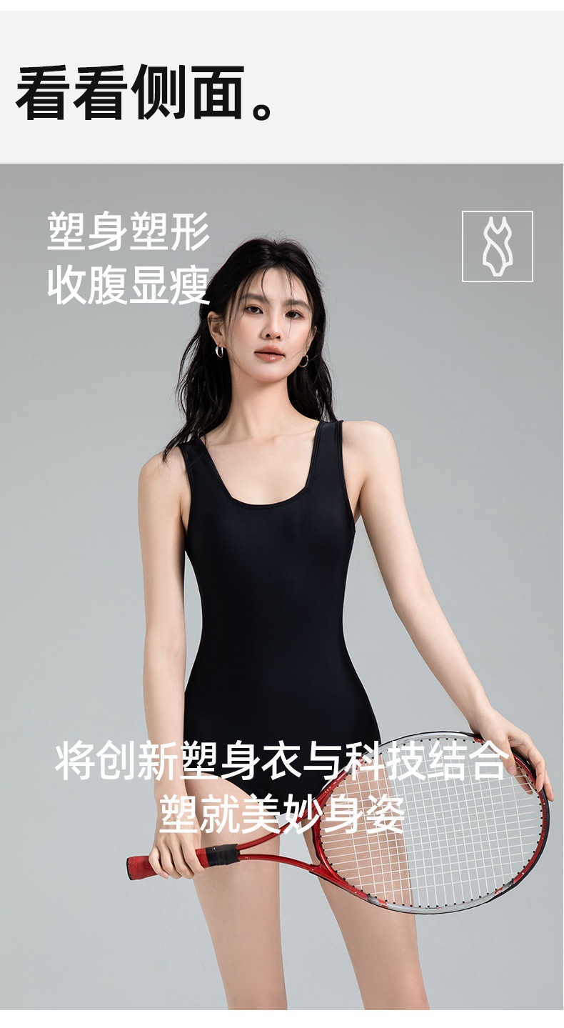 도매 새로운 보수적 인 단색 간단한 프로 스포츠 블랙 원피스 수영복 여성 자수 백리스 레이싱 수영복