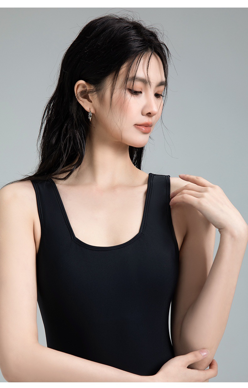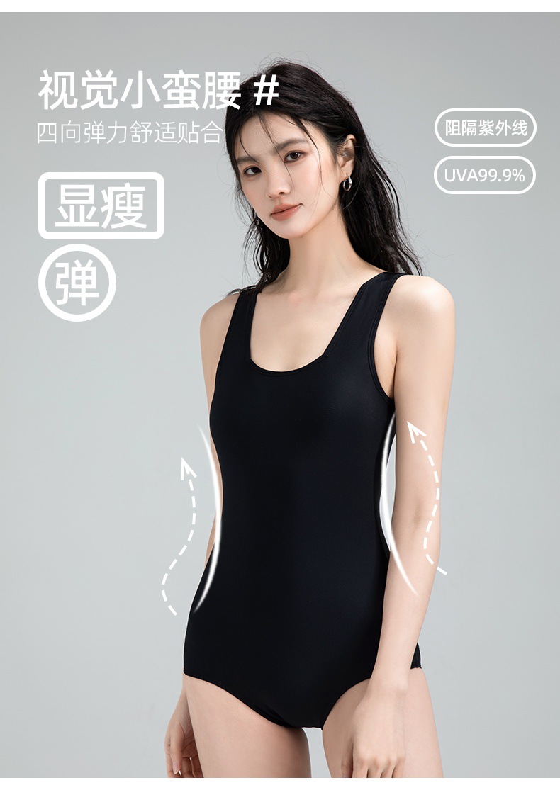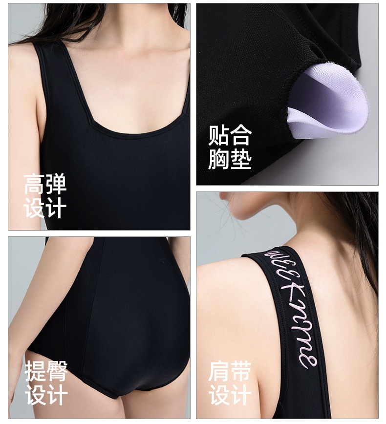도매 새로운 보수적 인 단색 간단한 프로 스포츠 블랙 원피스 수영복 여성 자수 백리스 레이싱 수영복스토어 가기